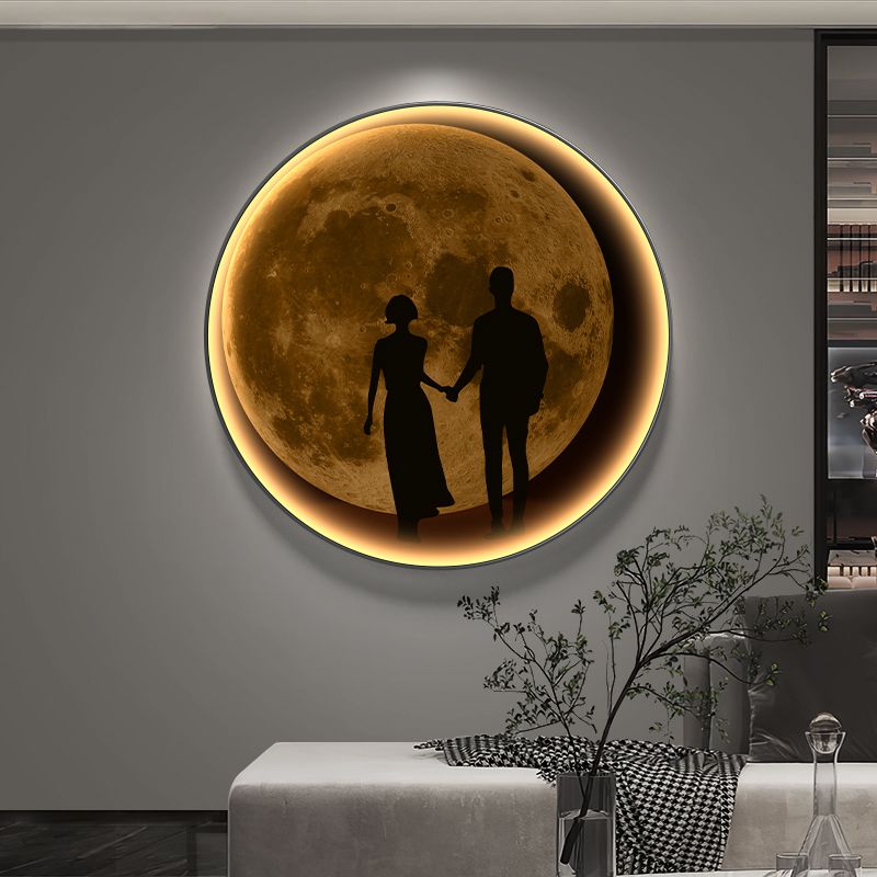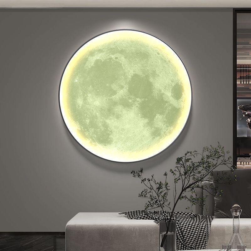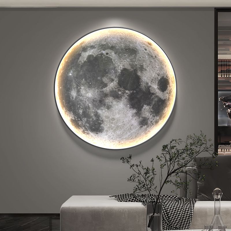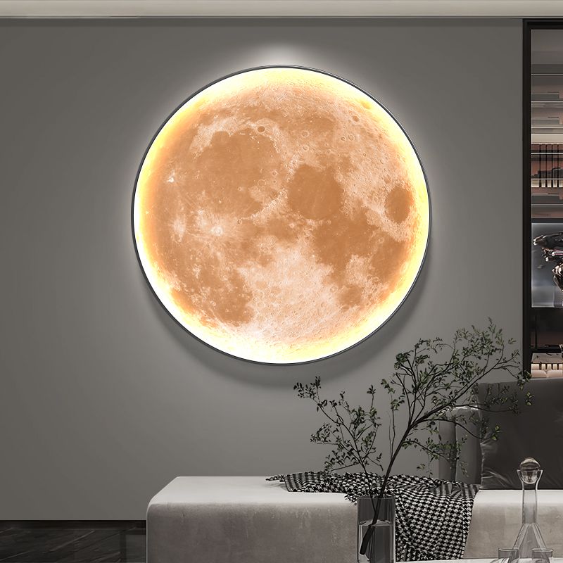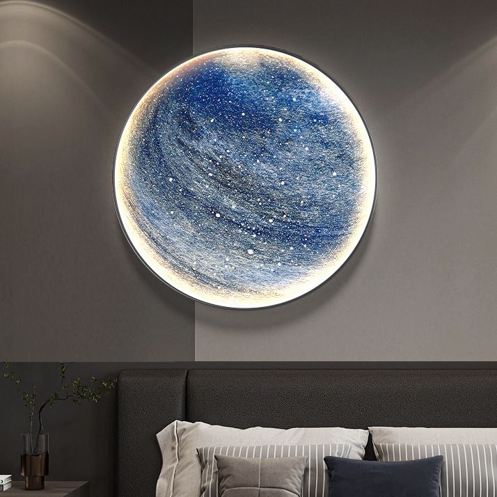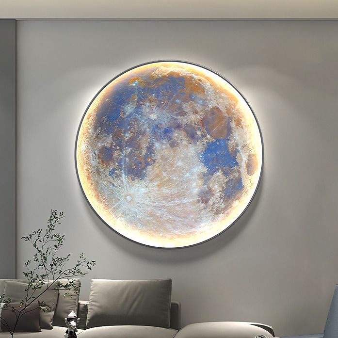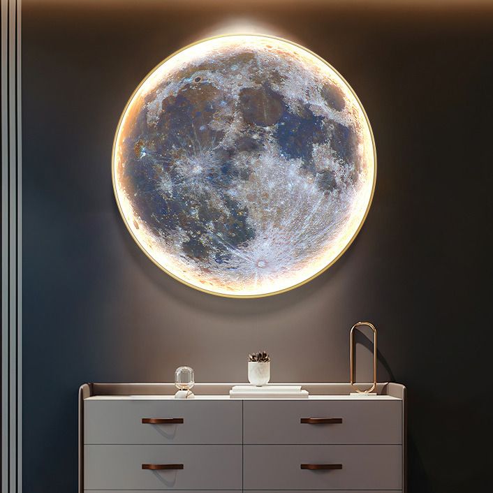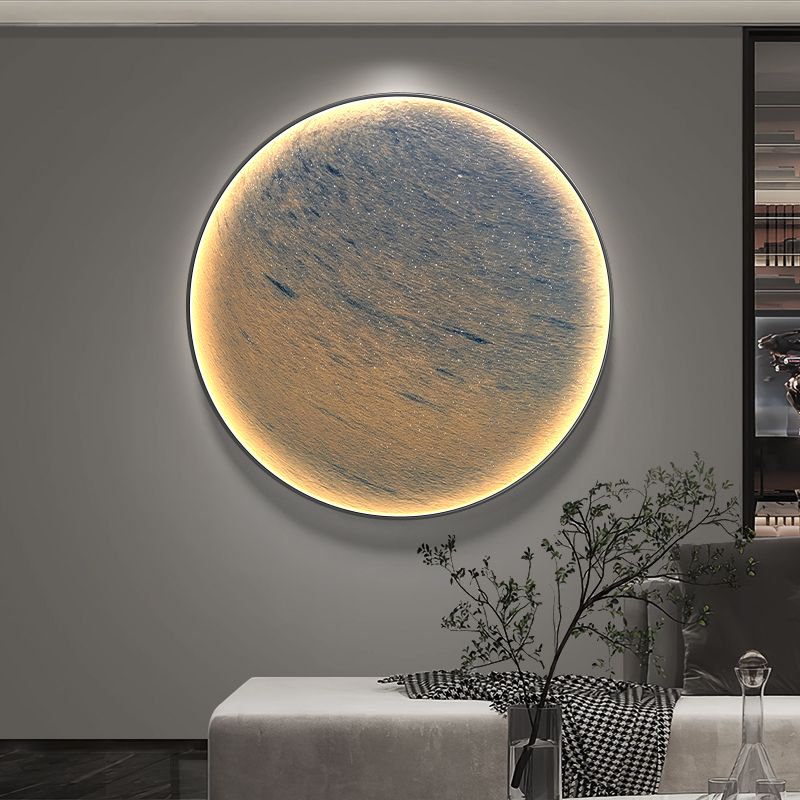 新款现代轻奢发光星球月球装饰画卧室床头圆形玄关客厅沙发壁画