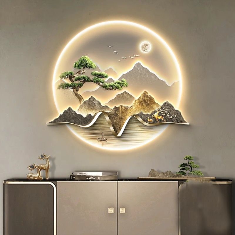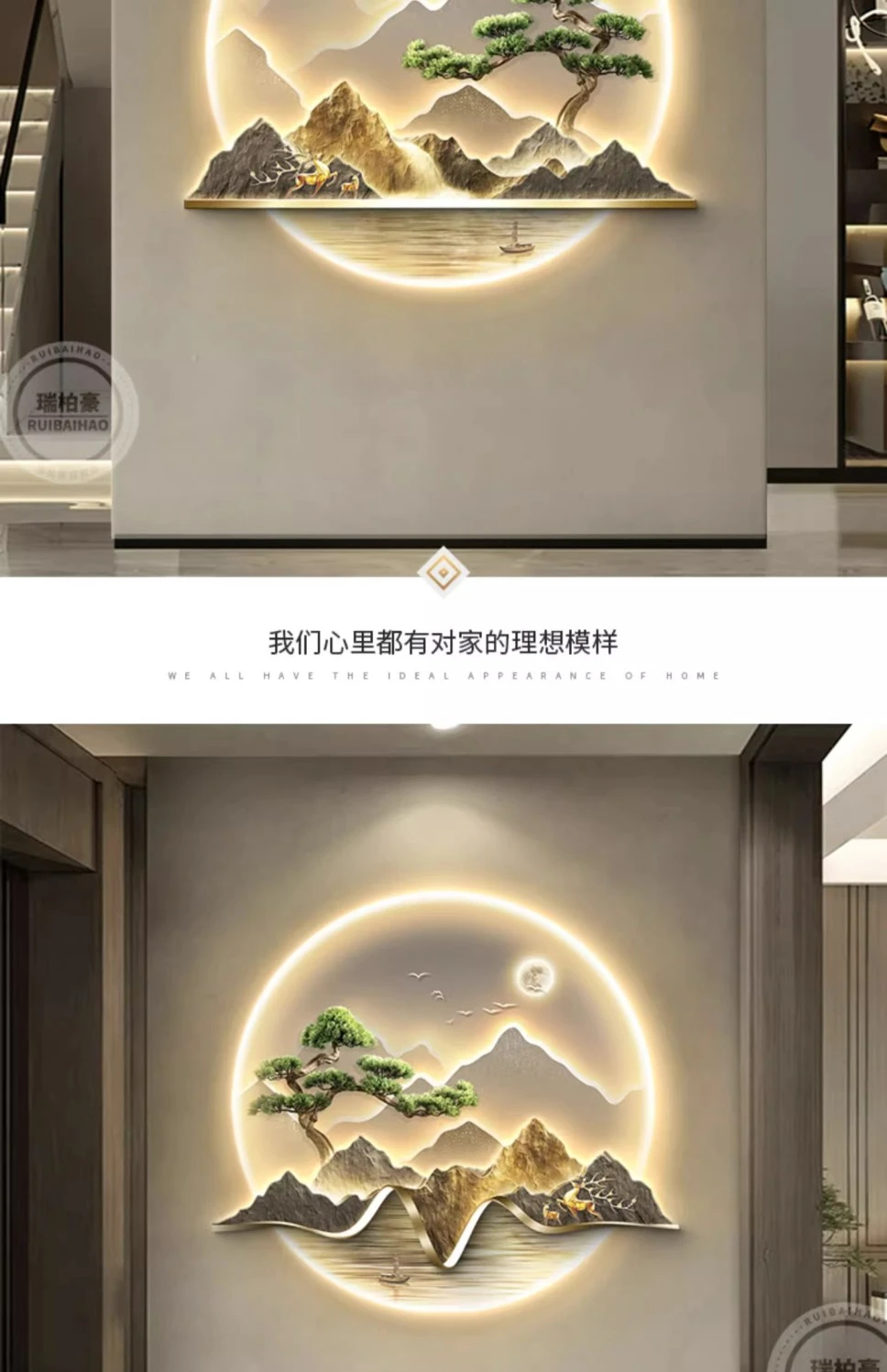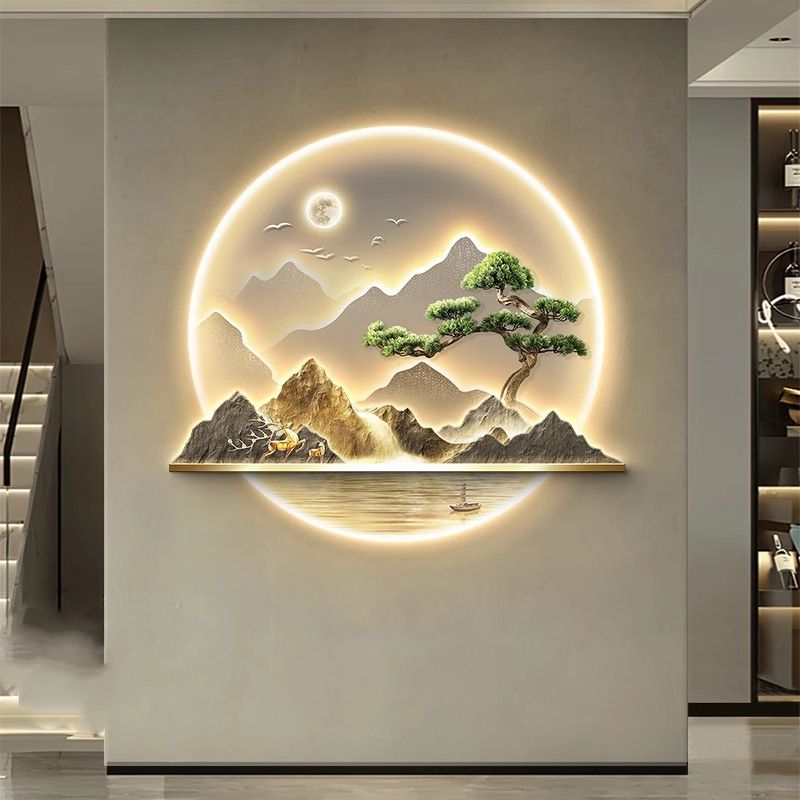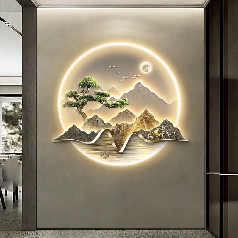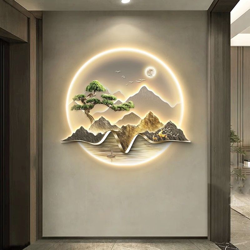 入户门玄关装饰画背有靠山客厅背景墙挂画山水画轻奢高级感壁灯画