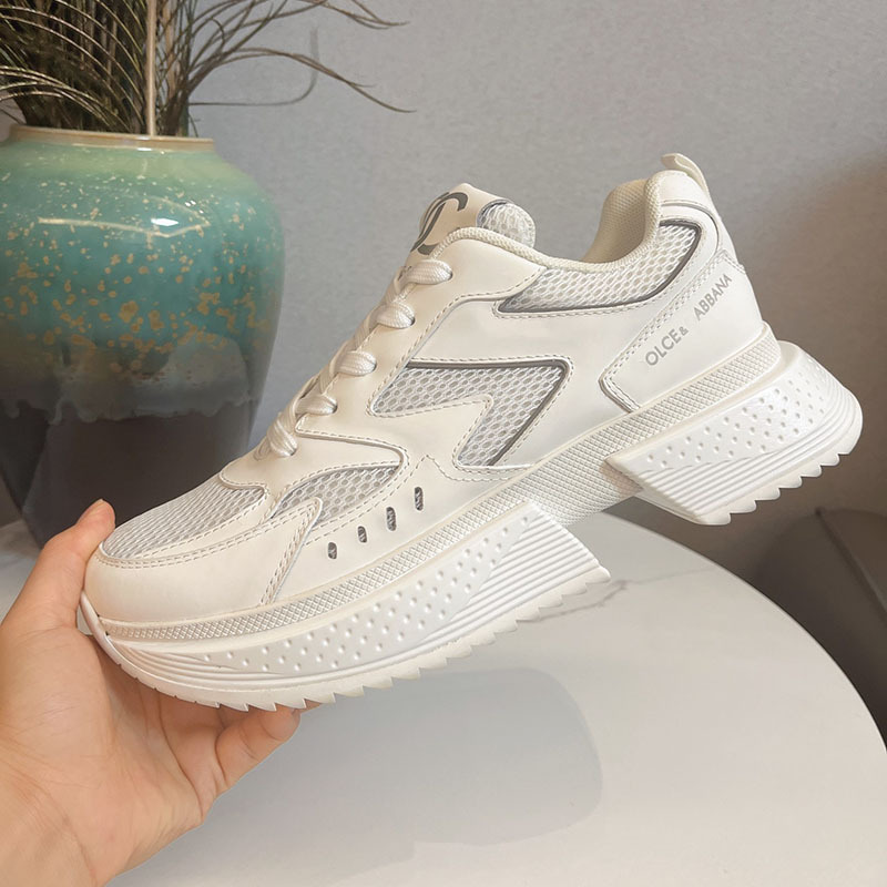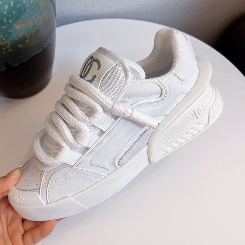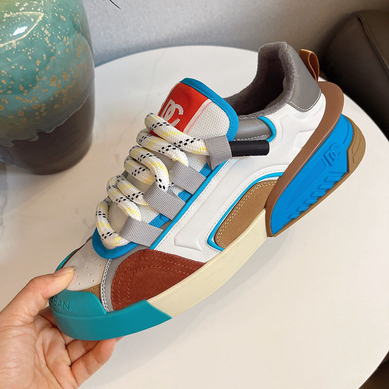 外贸欧洲站潮牌男女鞋新款真皮平底厚底拼接面包鞋休闲运动情侣鞋