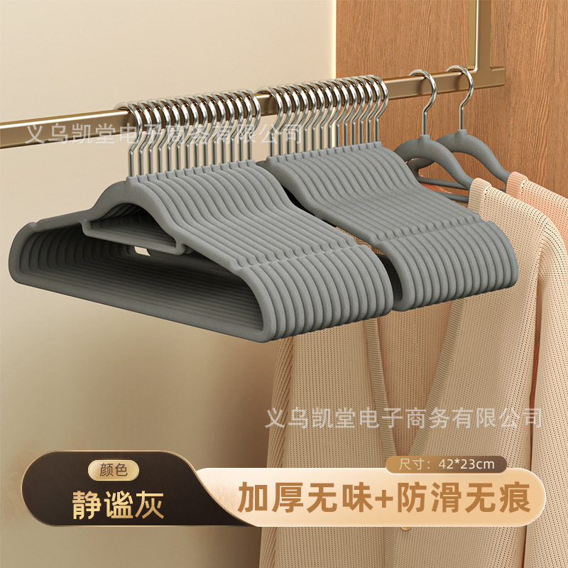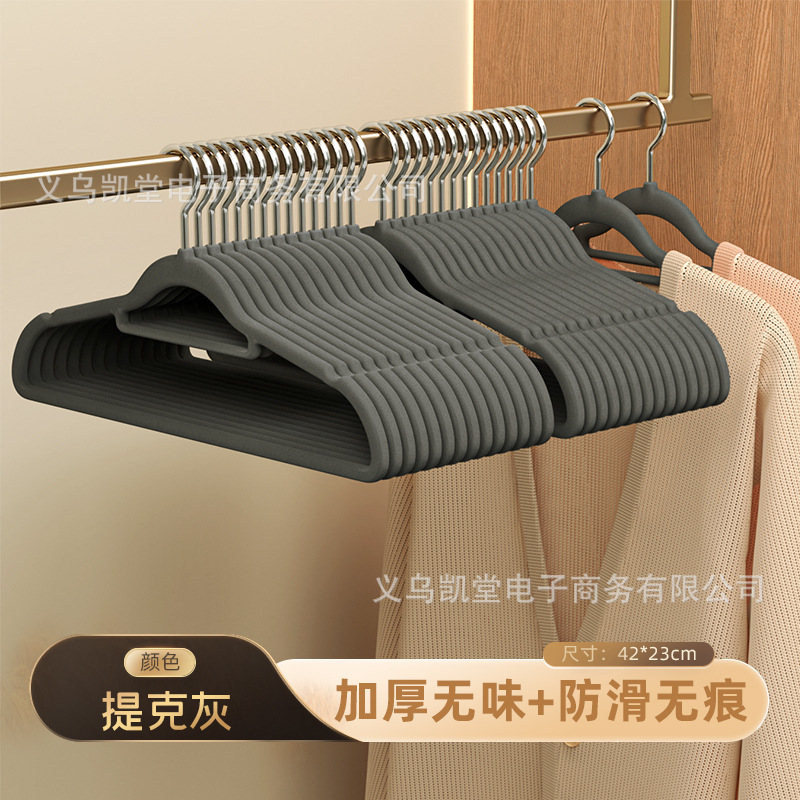 义乌凯堂成人衣架防滑无痕衣撑子植绒衣架裤夹整理师专用衣服架子