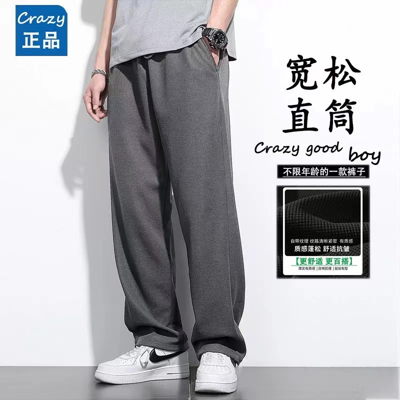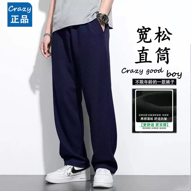 秋冬男士加绒加厚休闲长裤重磅华夫格宽松大码百搭直筒运动卫裤男
