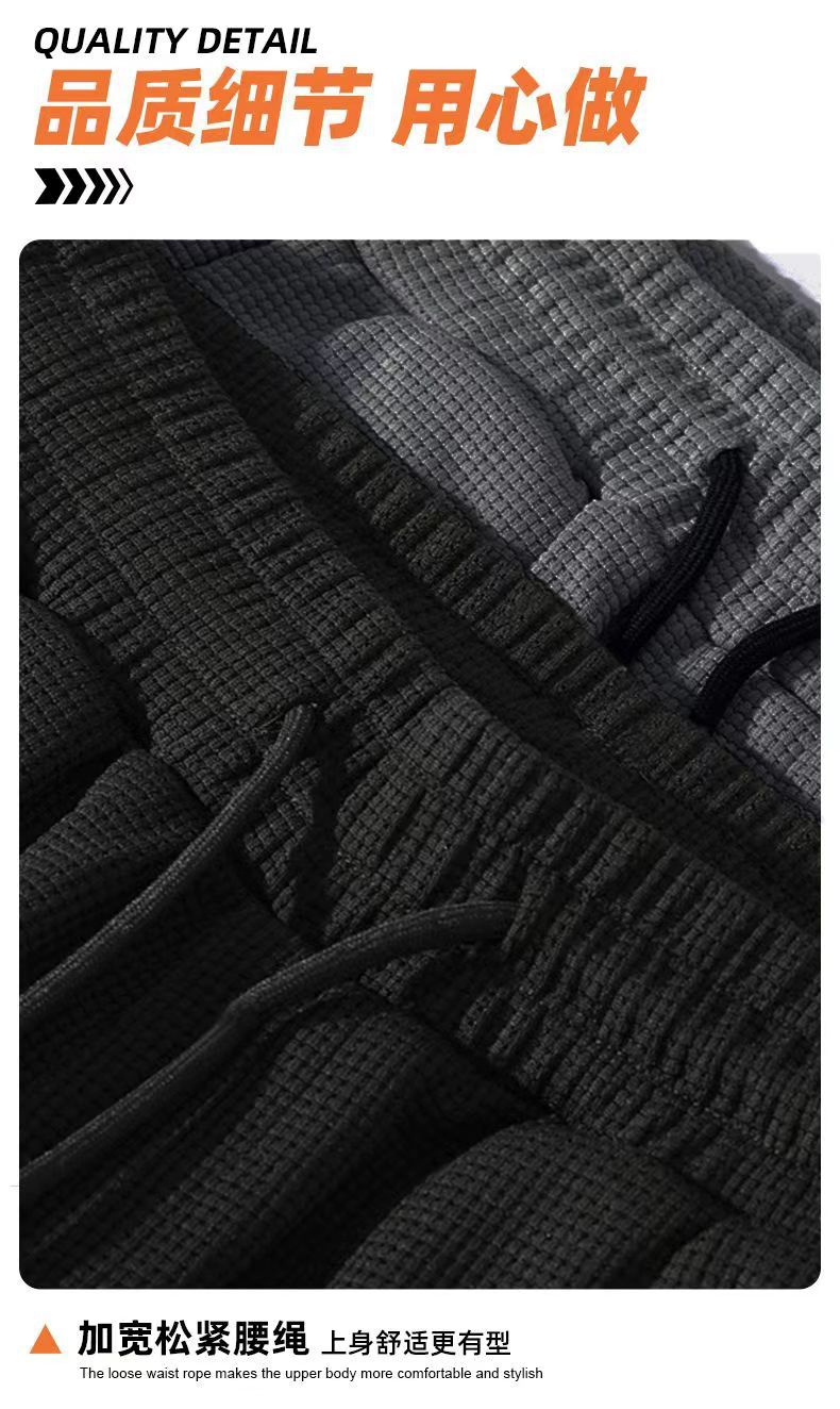 春夏薄款宽松华夫格休闲百搭运动简约显瘦直筒裤男休闲裤