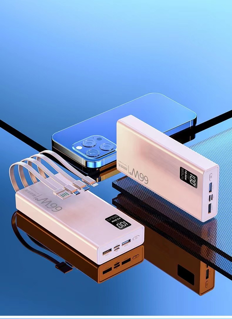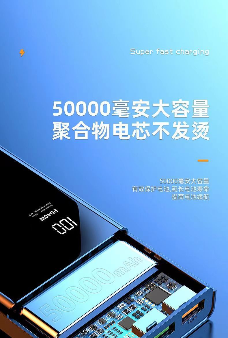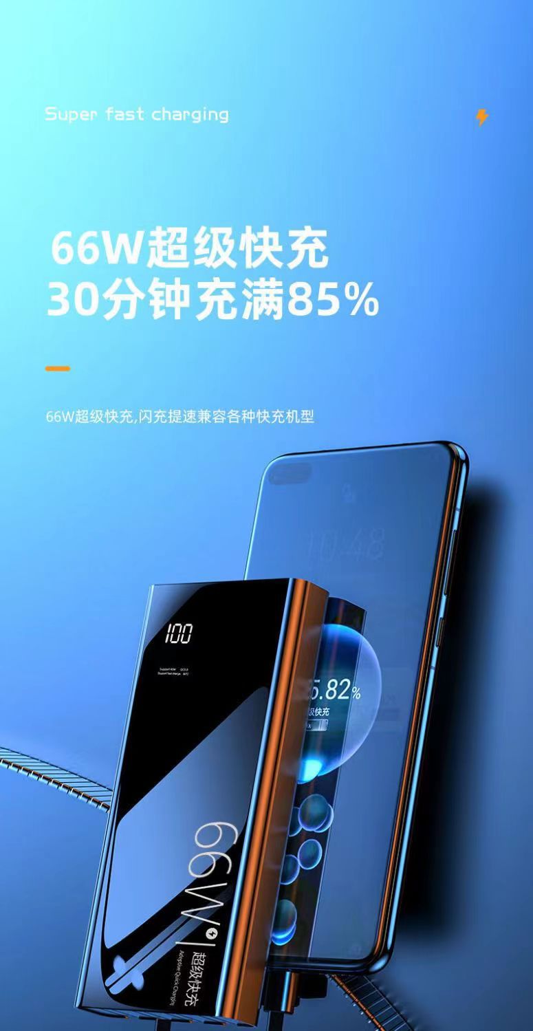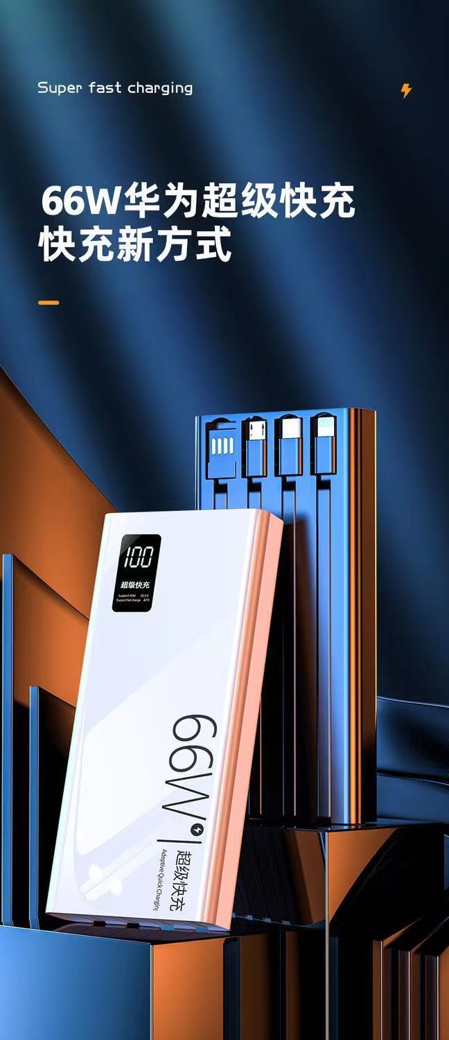 批发自带线充电宝50000毫安66W超级快充闪充移动电源定制LOGO图案