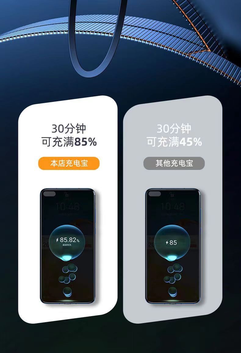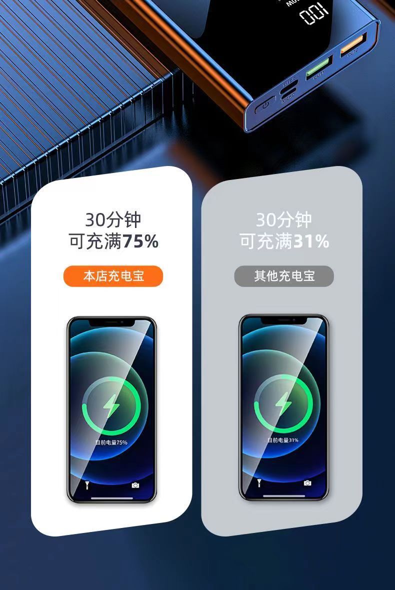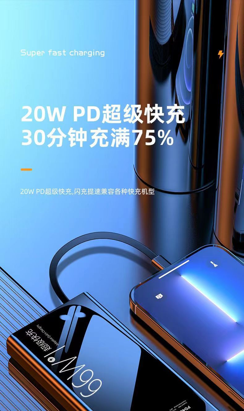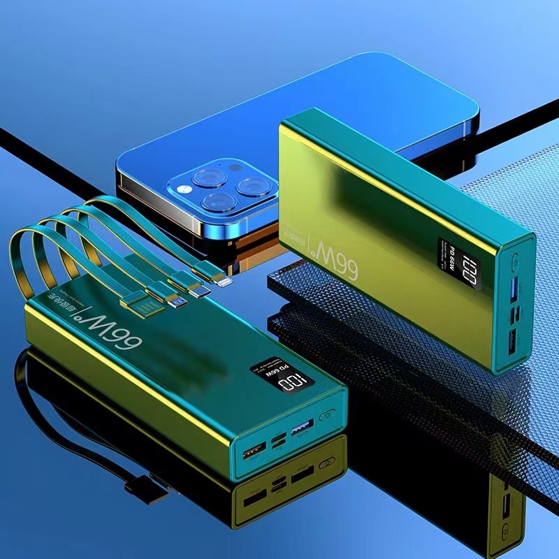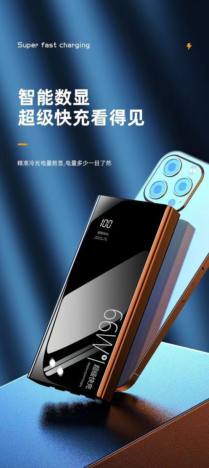 批发自带线充电宝50000毫安66W超级快充闪充移动电源定制LOGO图案