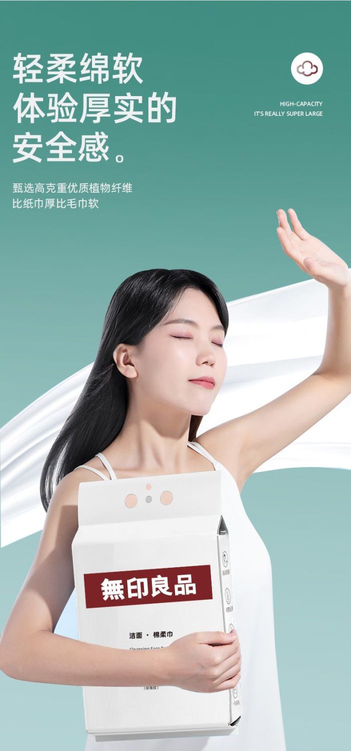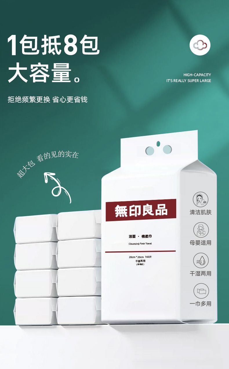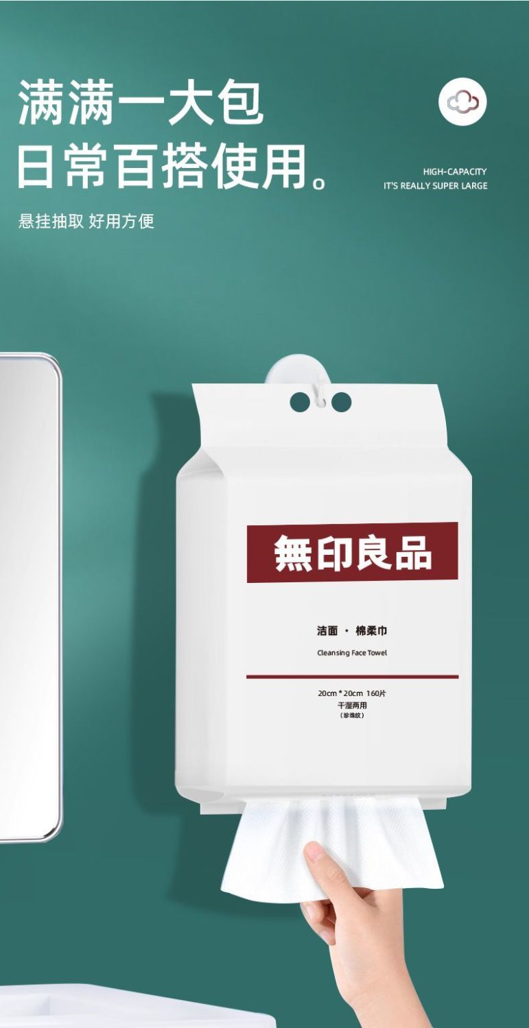 无印良品洗脸巾悬挂式棉柔巾超大包一次性擦脸巾加大加厚家庭装