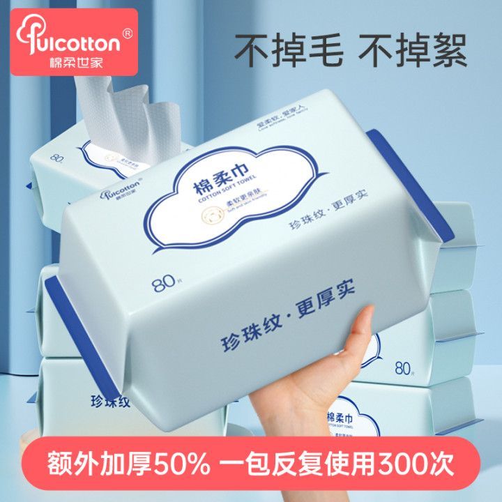 棉柔世家一次性洗脸巾加厚婴儿珍珠纹棉柔巾抽取式干湿两用洁面巾