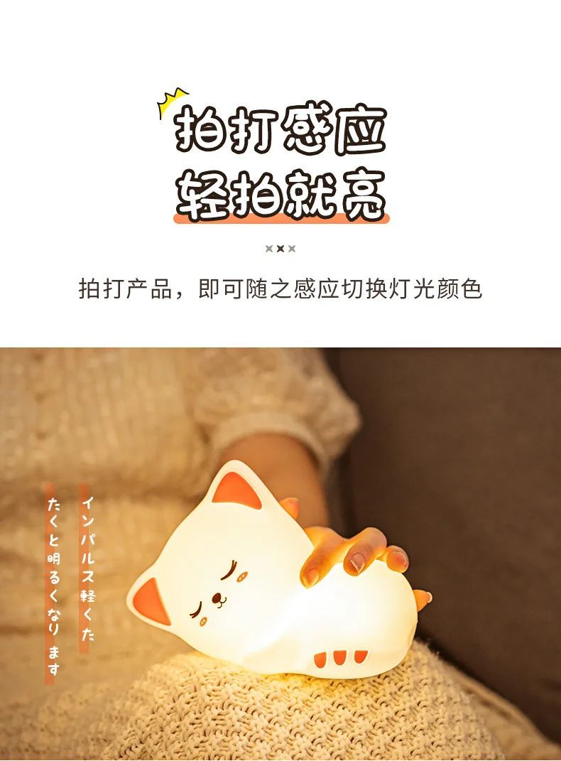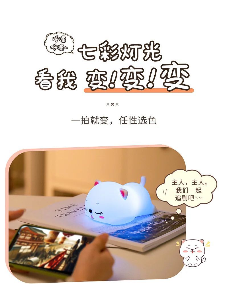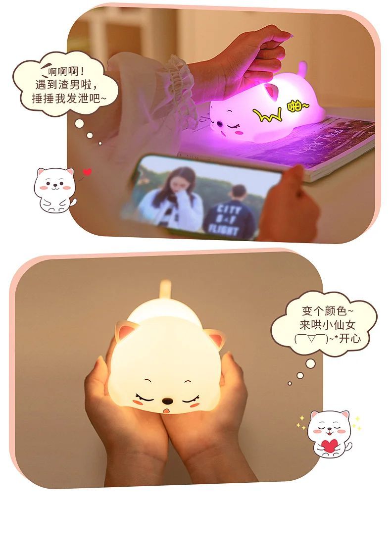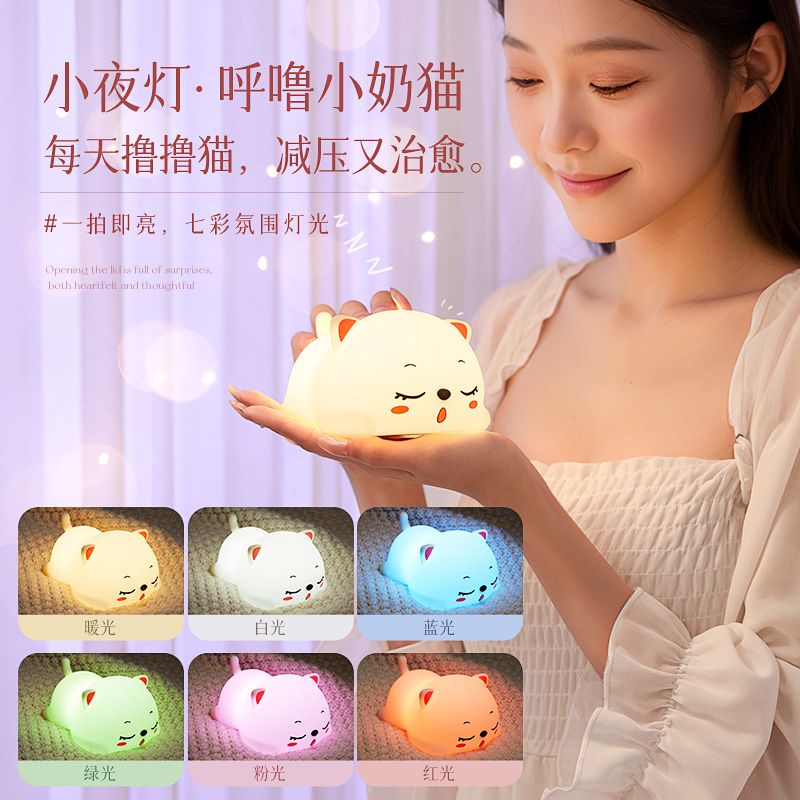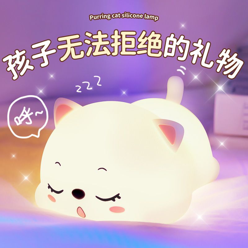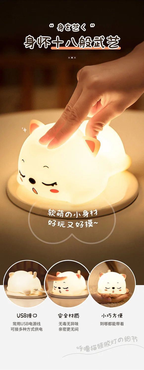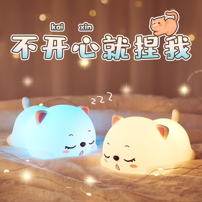 万火呼噜猫硅胶小夜灯卧室伴睡生日礼物女生送女友实用教师节老师