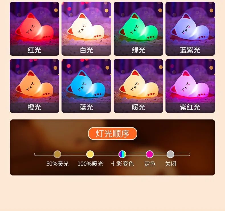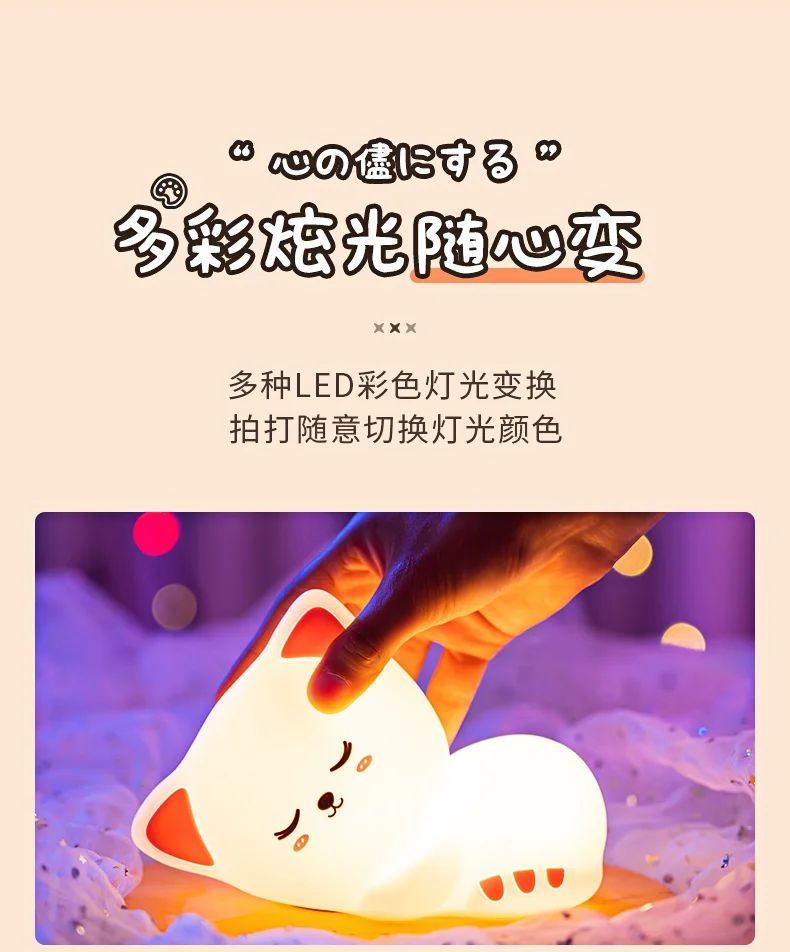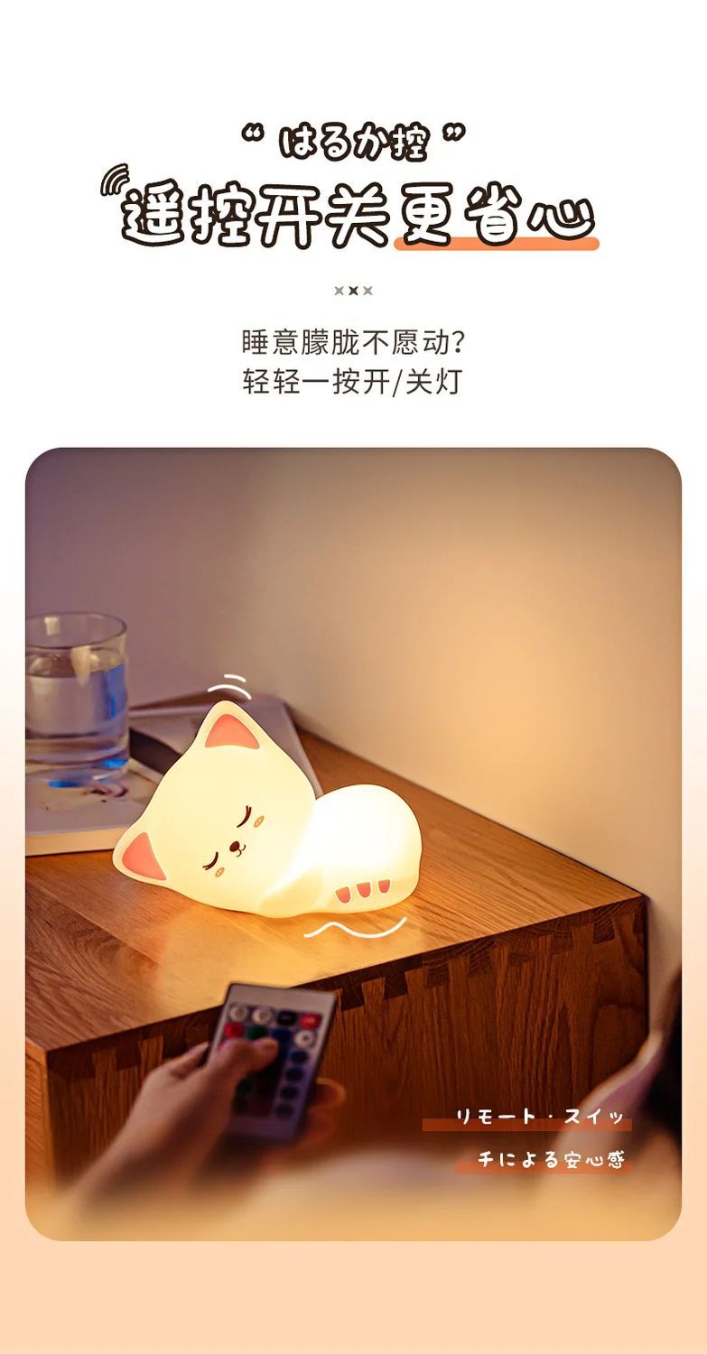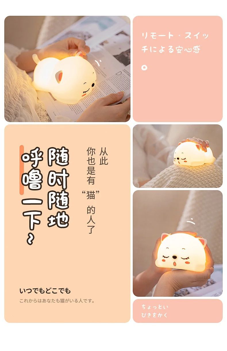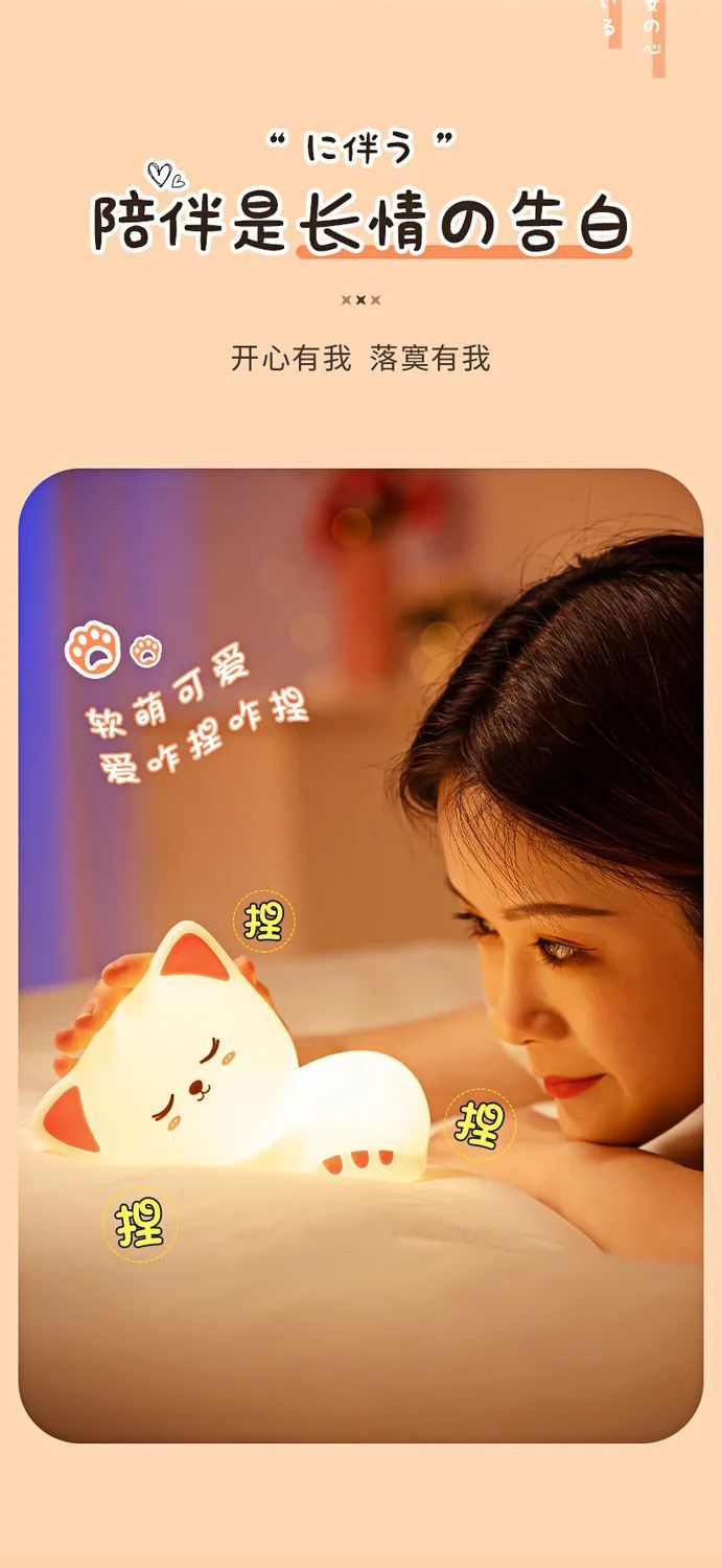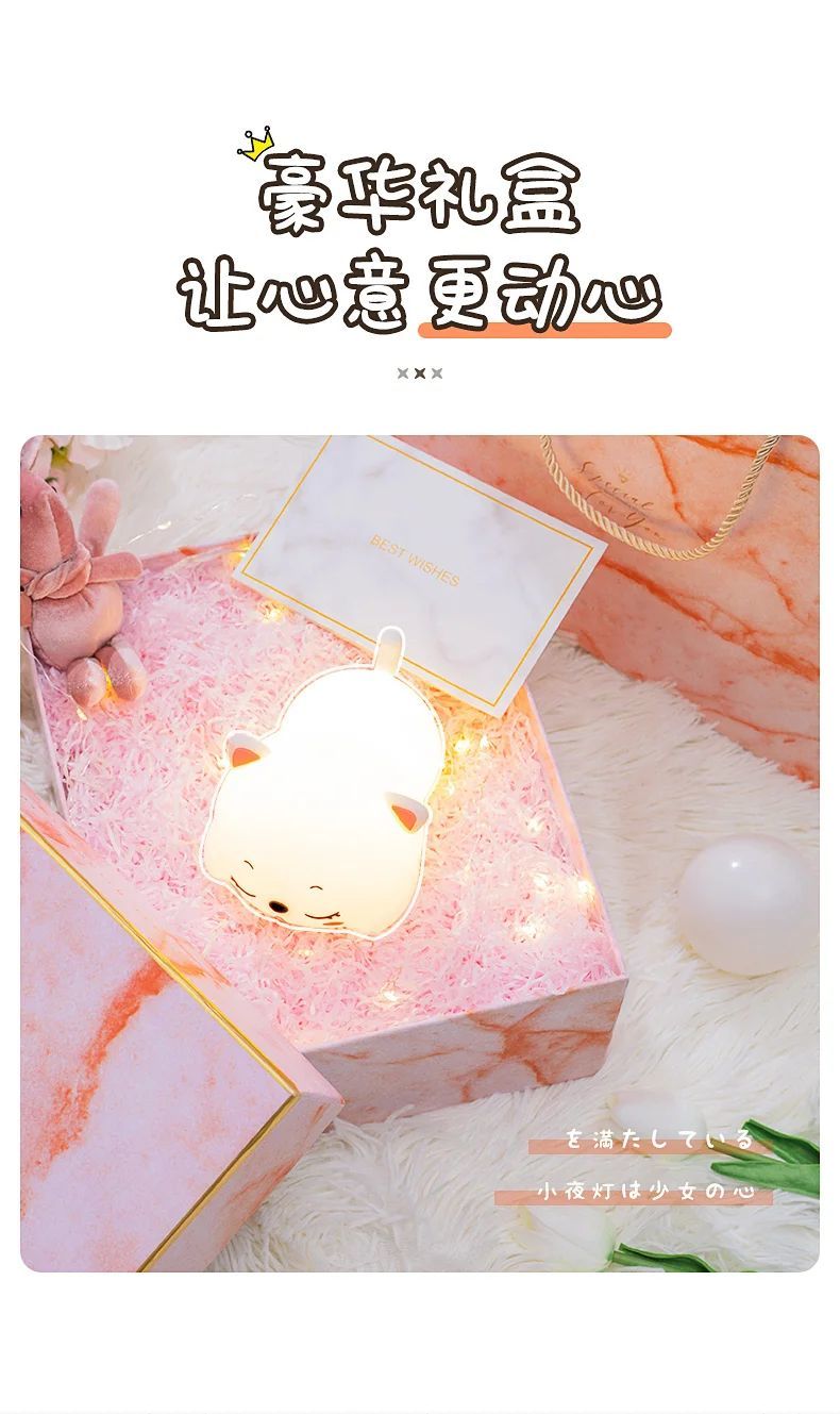万火呼噜猫硅胶小夜灯卧室伴睡生日礼物女生送女友实用教师节老师