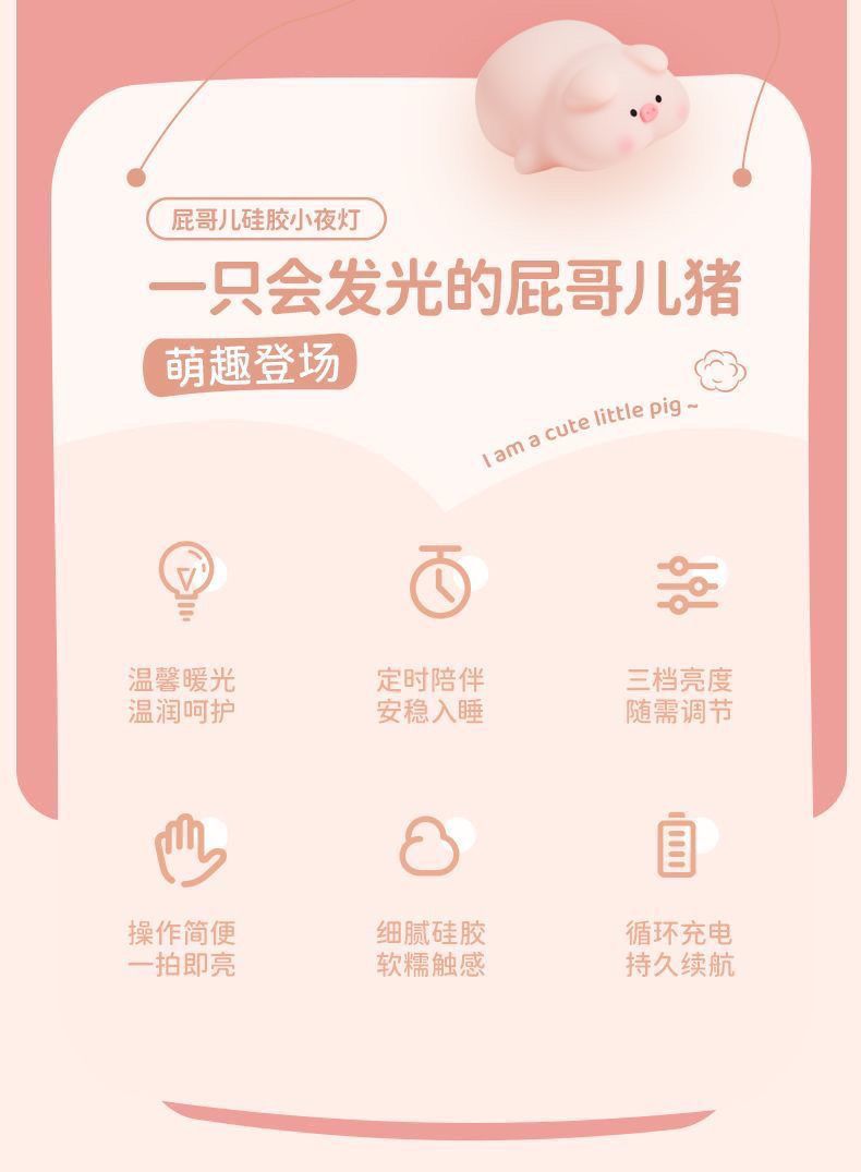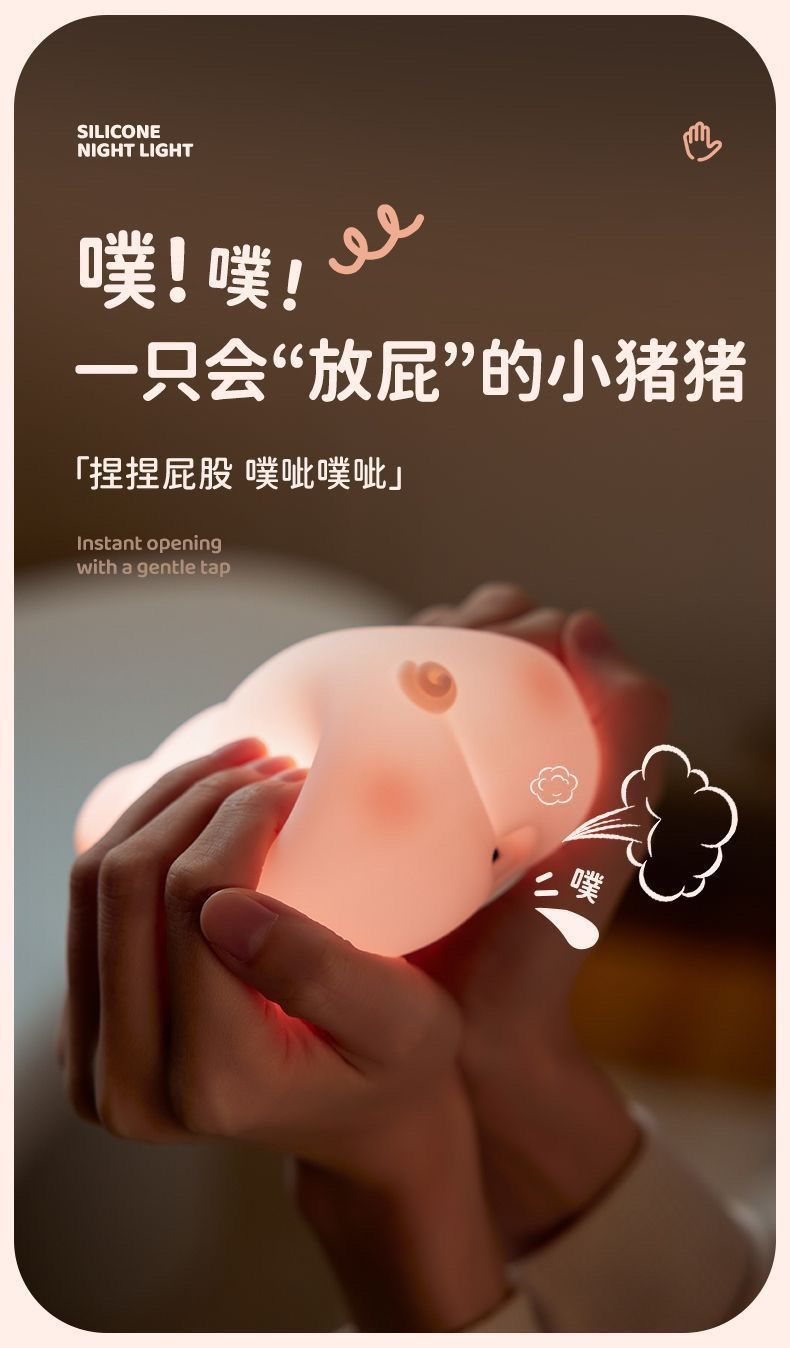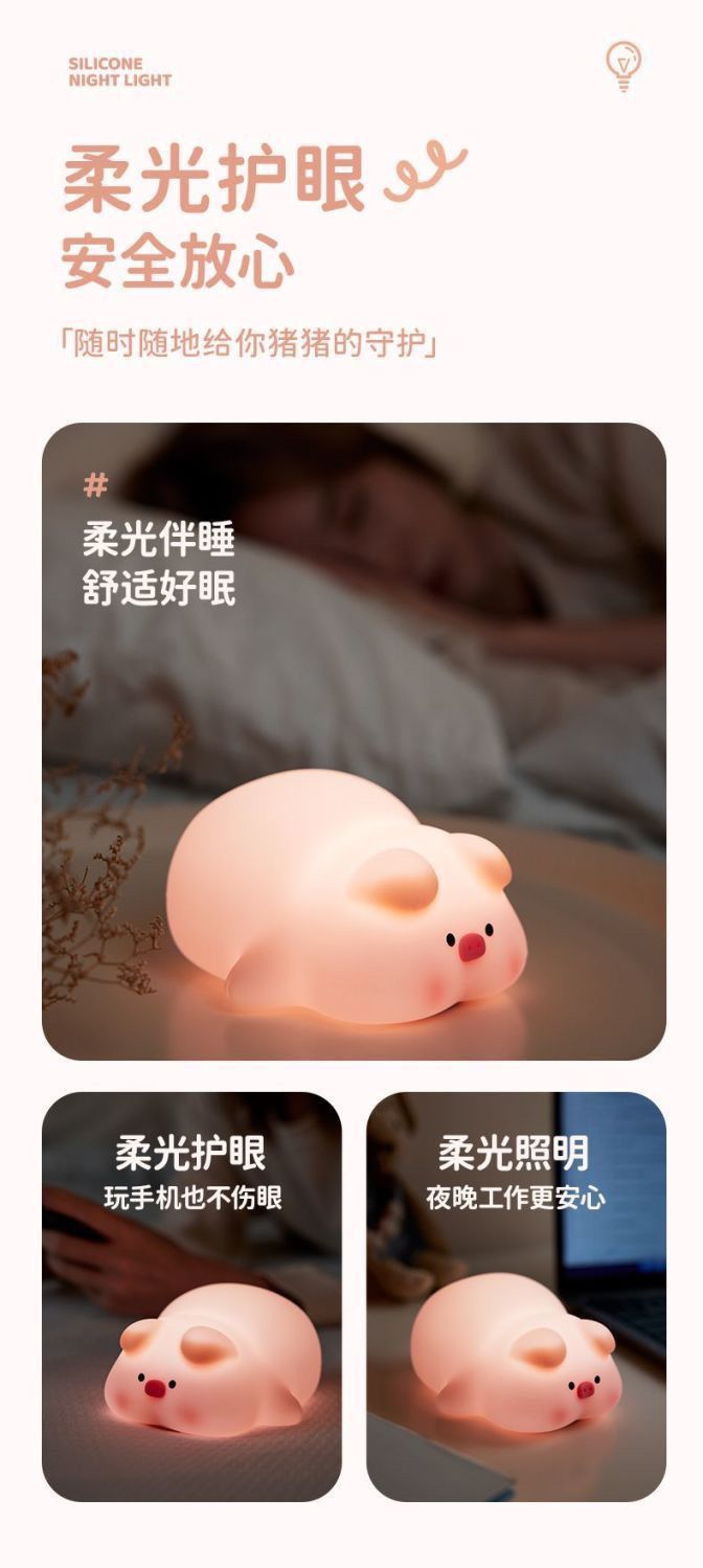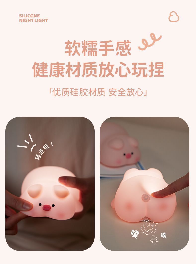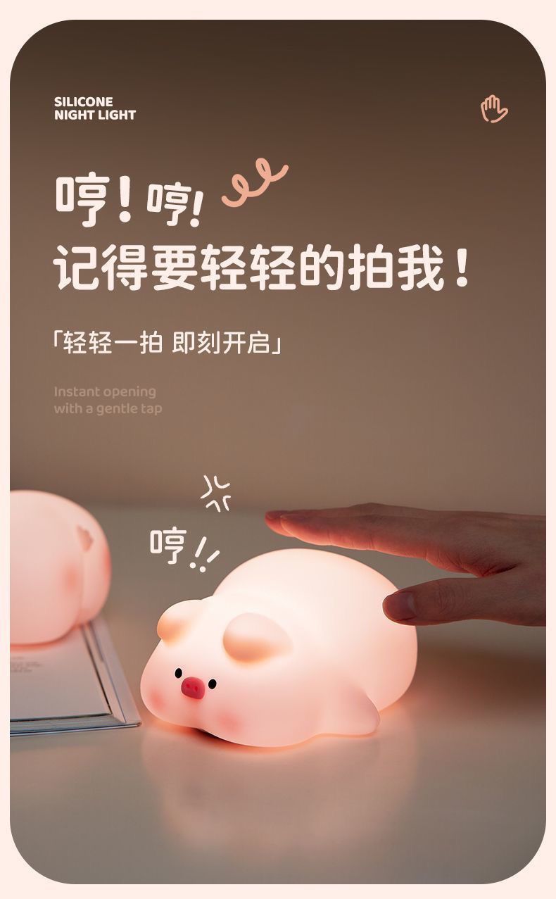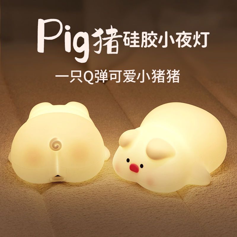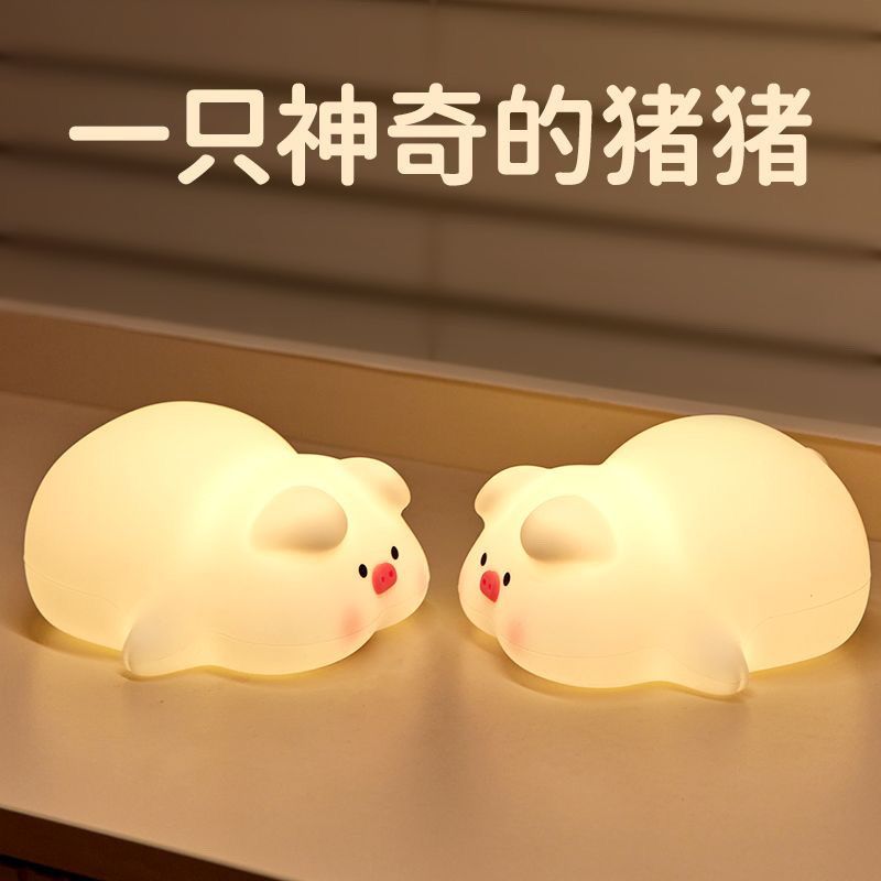 可爱猪猪少女拍拍硅胶小夜灯卧室女生床头闺蜜生日礼物伴睡灯解压