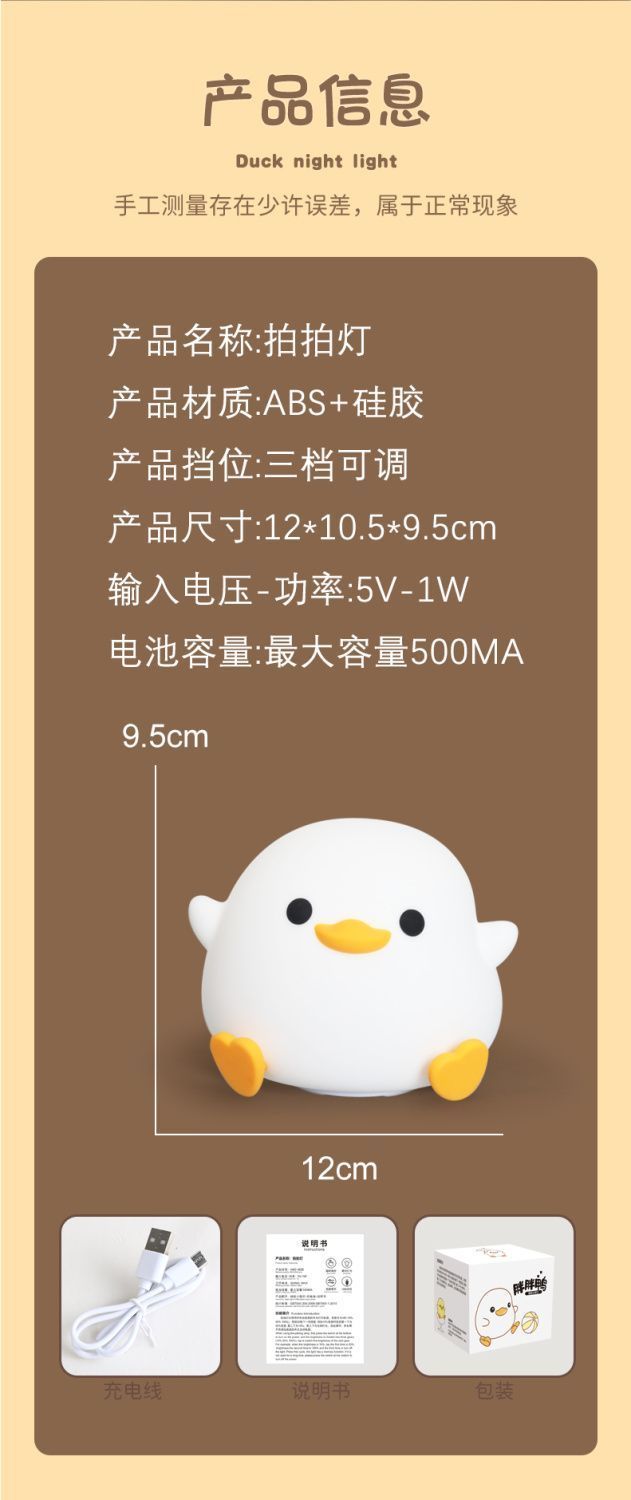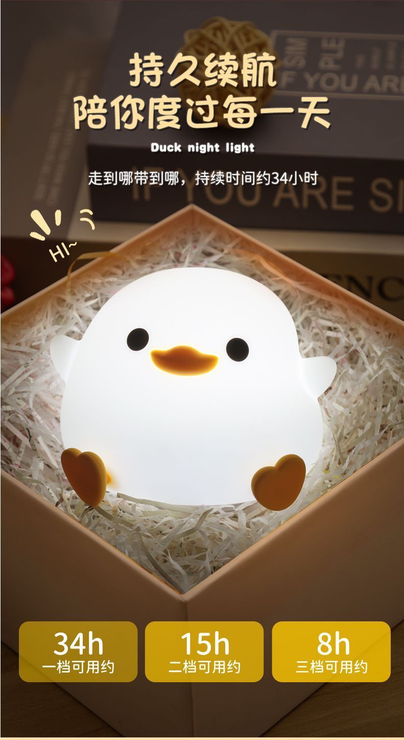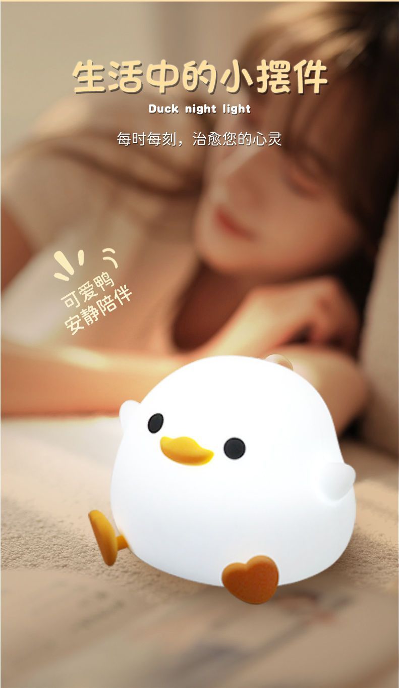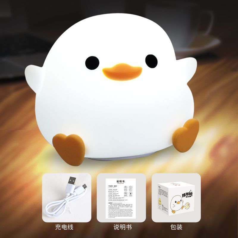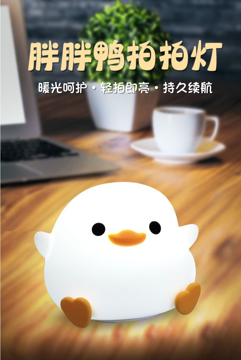 硅胶小夜灯卧室睡眠灯豆豆鸭捏捏拍拍灯小鸭子儿童伴睡台灯床头灯