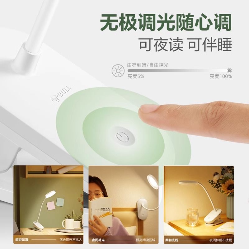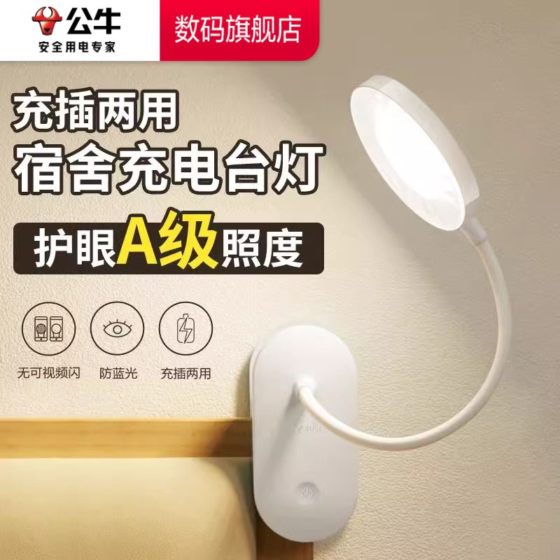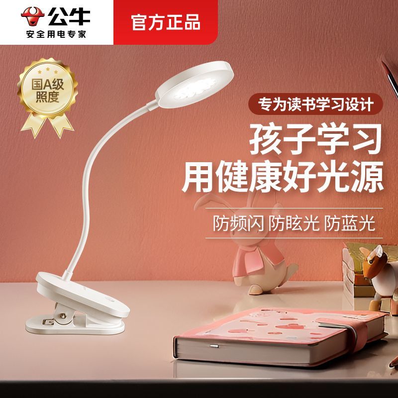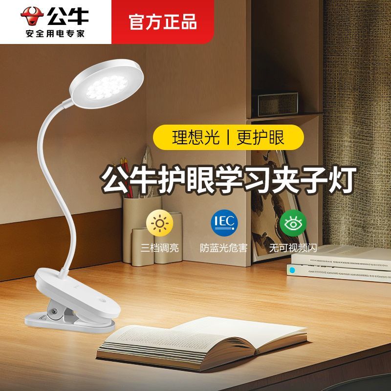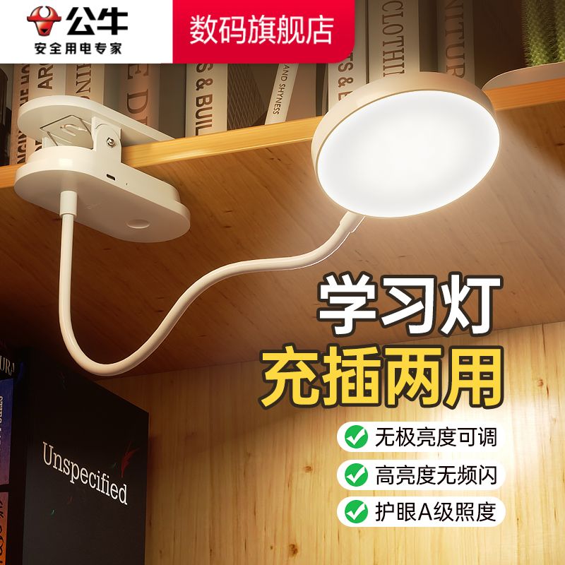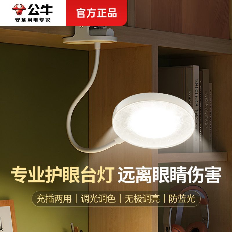 公牛夹子台灯LED护眼学习学生宿舍充电插电两用小台灯卧室床头灯
