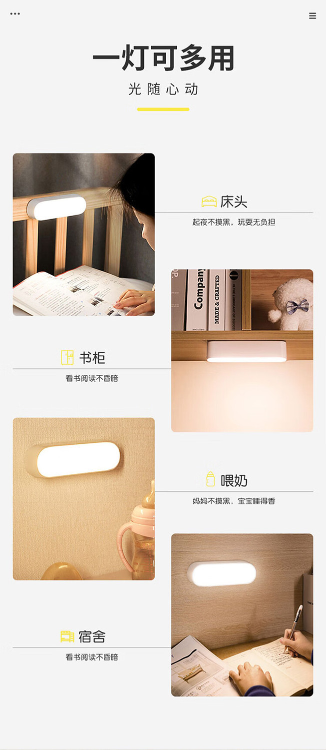 台灯床头小夜灯宿舍床上用磁吸充电式卧室寝室学习LED护眼床头灯