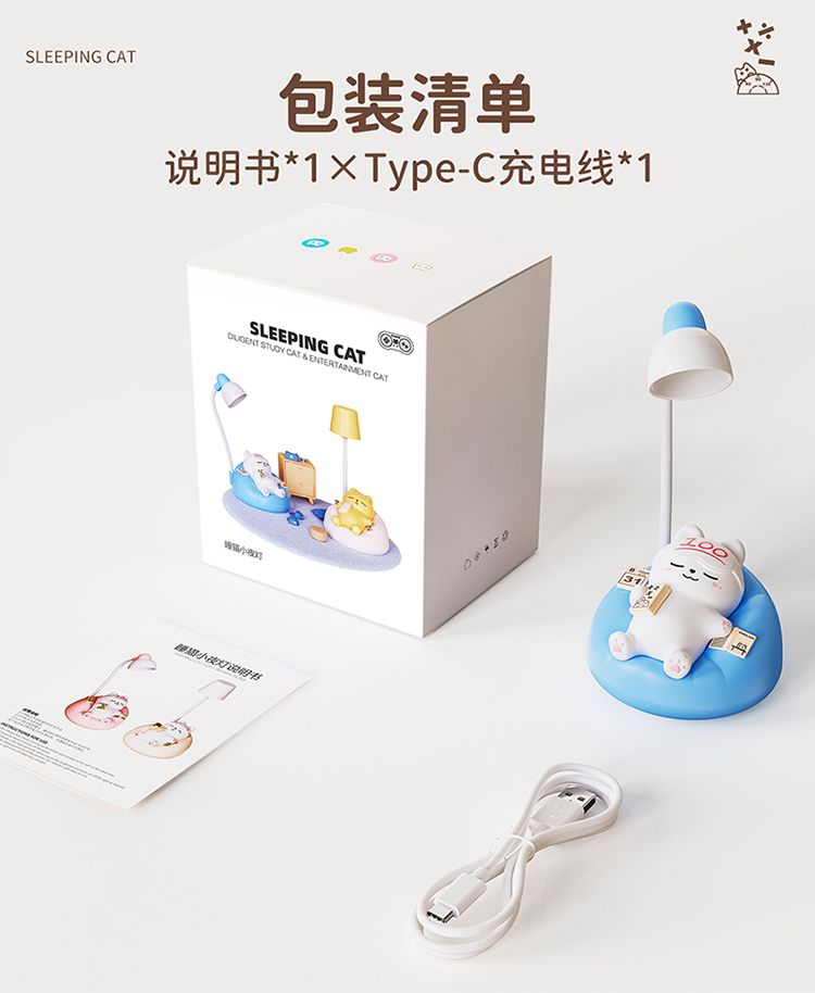 | cute sleeping cat night light [blue style] racket the third gear brightness(萌睡猫拍拍灯【蓝色款】拍拍三挡亮度) | USD $5.5 | 99999 piece available |