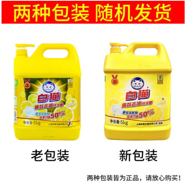 正品白猫 洗洁精5kg/桶 20斤/40斤家庭装厨房洗碗去油不伤手饭店