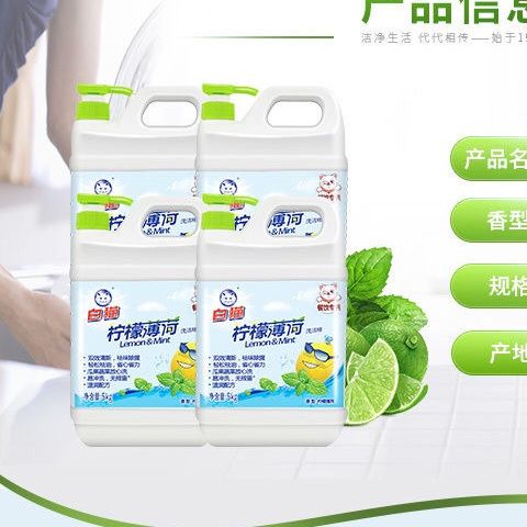 | white cat lemon mint detergent 5kg * 2 bottles(白猫柠檬薄荷洗洁精5kg*2瓶) | USD $13.14 | 99999 piece available |