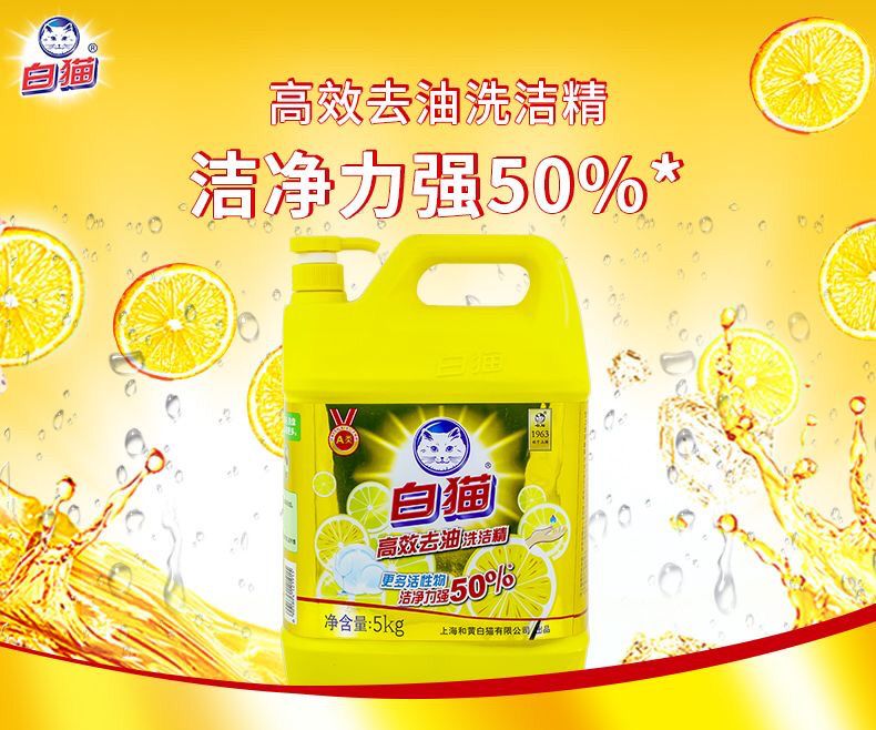 | white cat efficient oil removal detergent 5kg * 4 bottles(白猫高效去油洗洁精5kg*4瓶) | USD $22.24 | 99999 piece available |