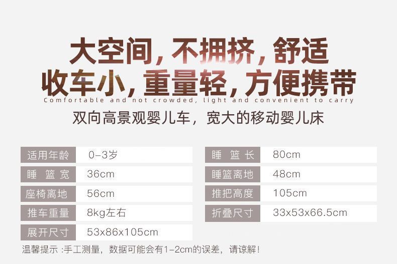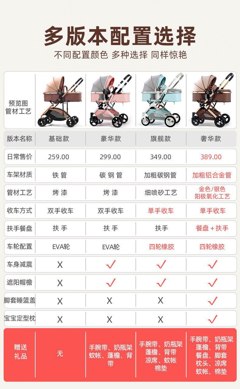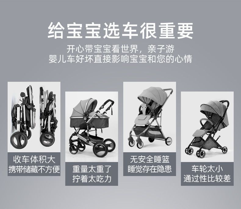 婴儿推车高景观推车可坐可躺可折叠宜家双向婴儿推车新生儿手推车