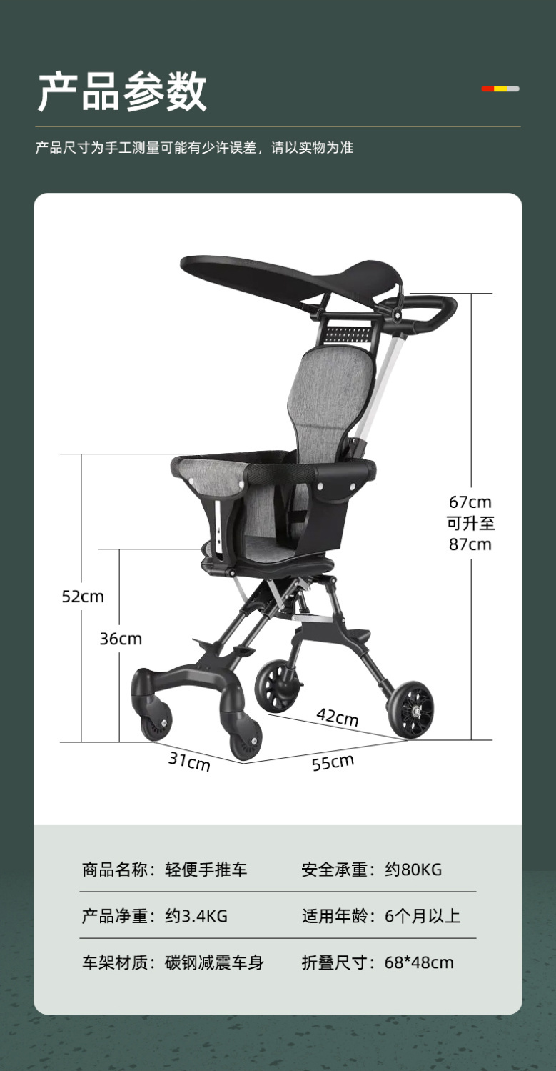 遛娃神器宝宝儿童推车轻便折叠婴儿外出一键收车新款小巧简易推车