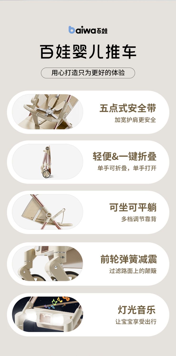 | champagne gold + sitting and lying + one-hand folding + spring shock absorption(香槟金+可坐可躺+单手折叠+弹簧减震) | USD $71.31 | 99999 piece available |