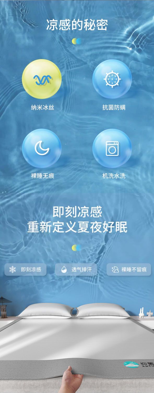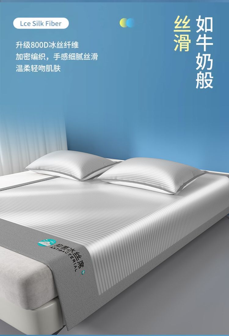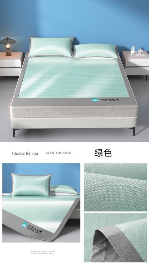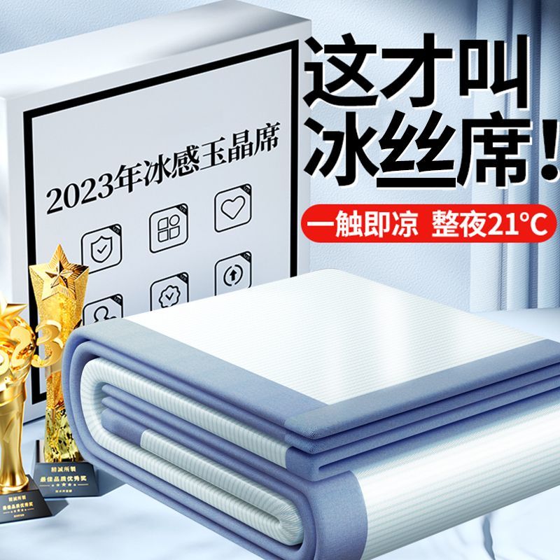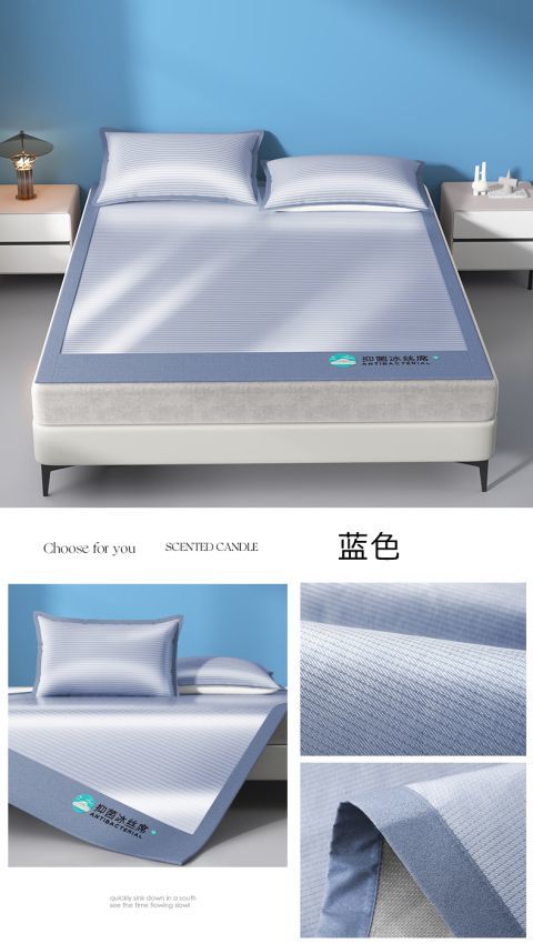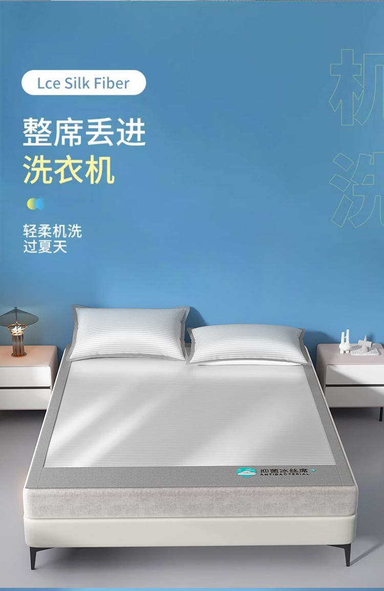 夏季凉席冰丝席可机洗水洗席子三件套家用双人可折叠床笠软席