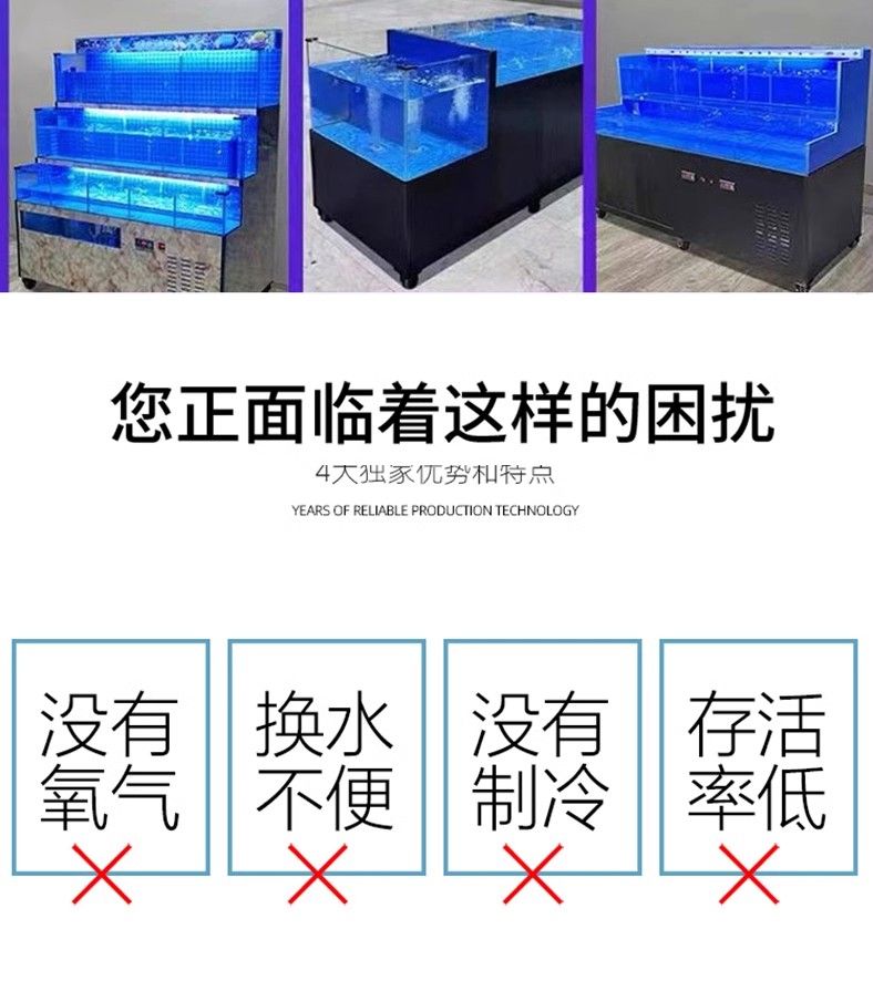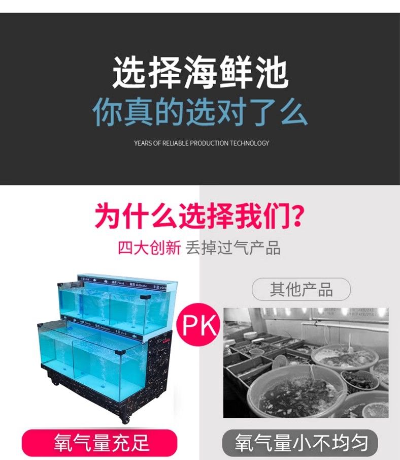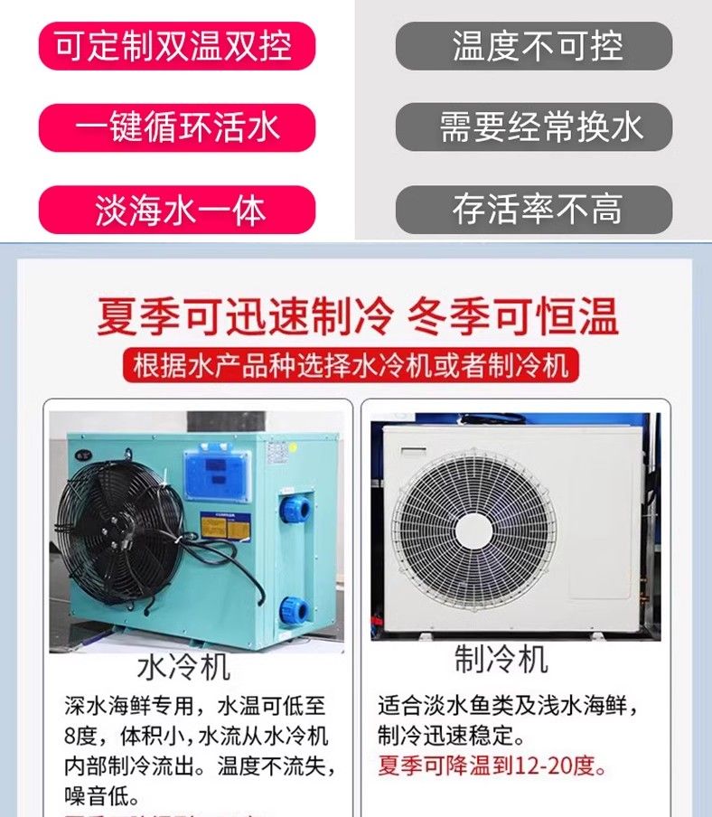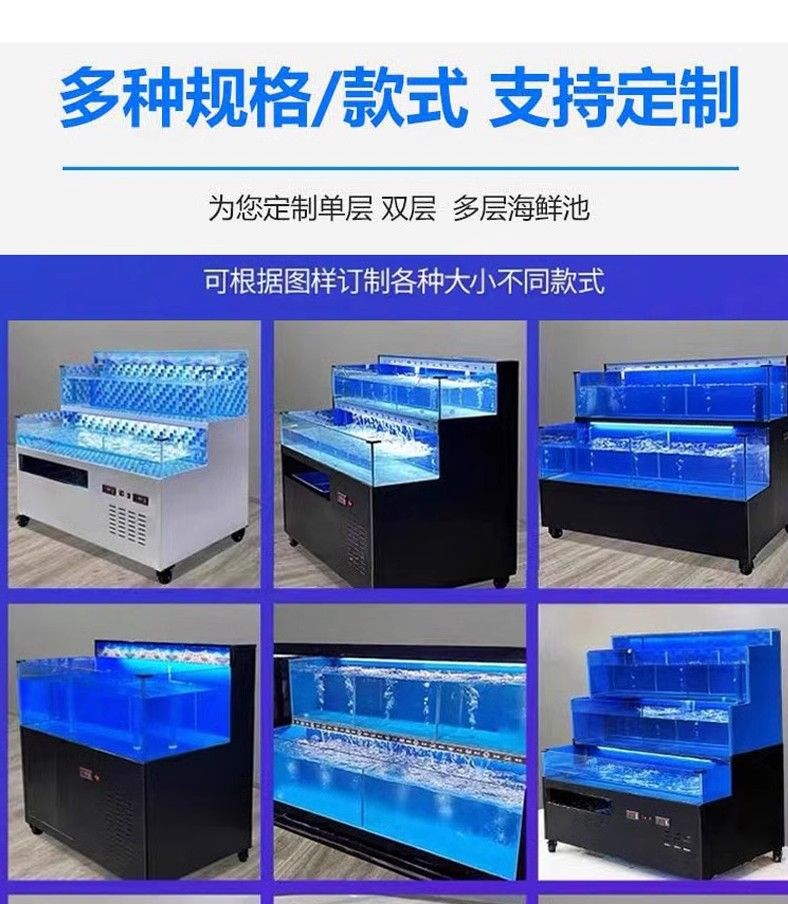 商用鱼缸饭店专用移动海鲜池商用制冷一体机循环过滤二层贝类鱼池