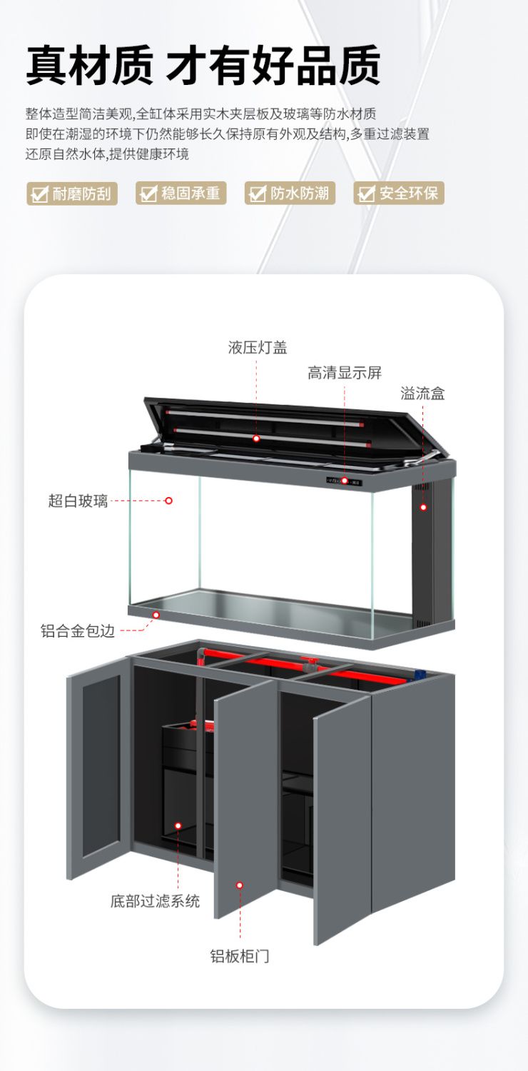 金晶超白落地玻璃鱼缸家用客厅底滤中大型免换水族箱龙鱼缸新款