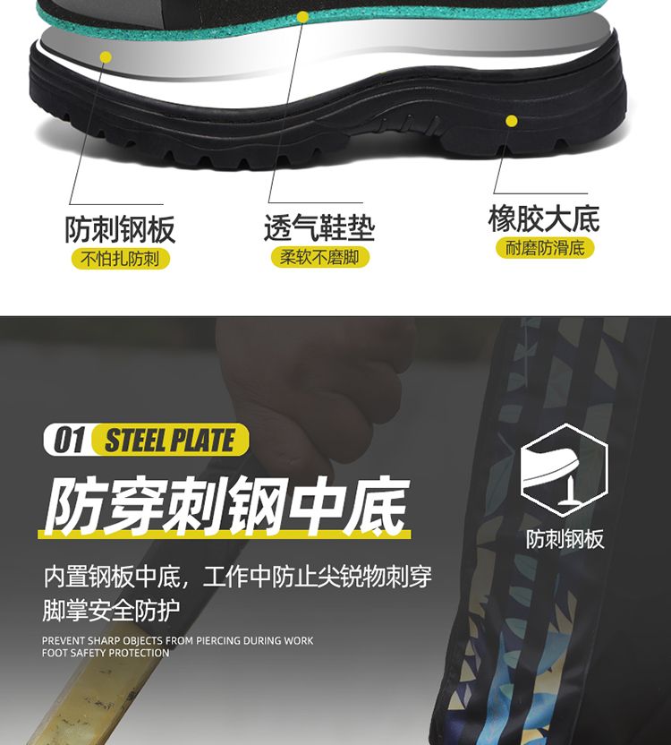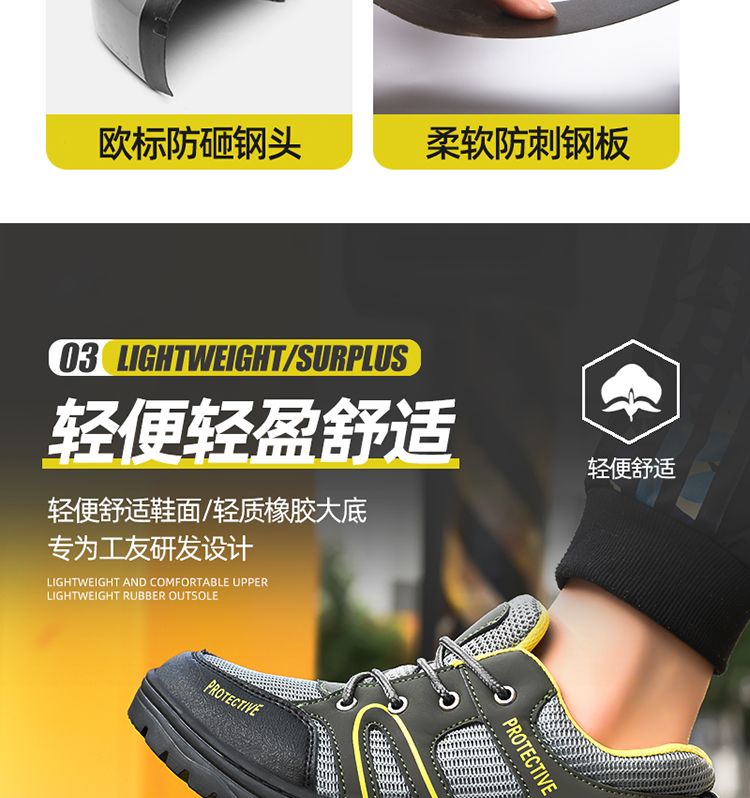 劳保鞋男防砸防刺带钢板钢包头防臭透气耐磨工作鞋防滑