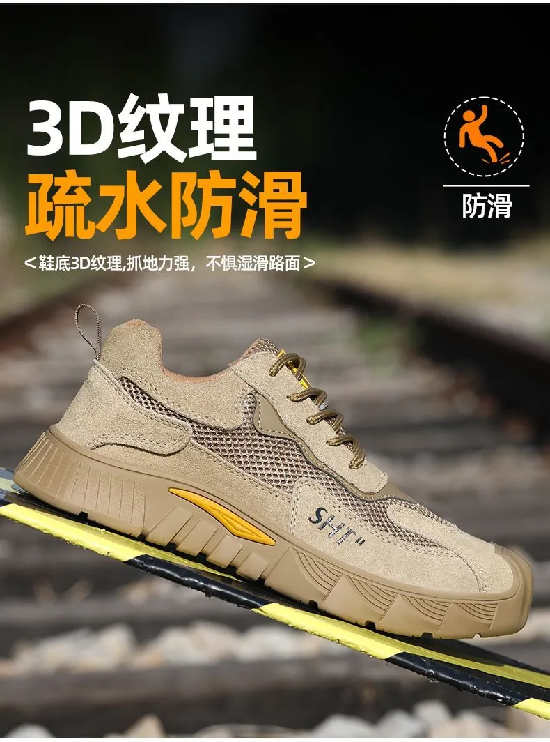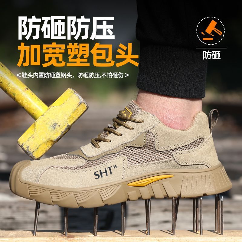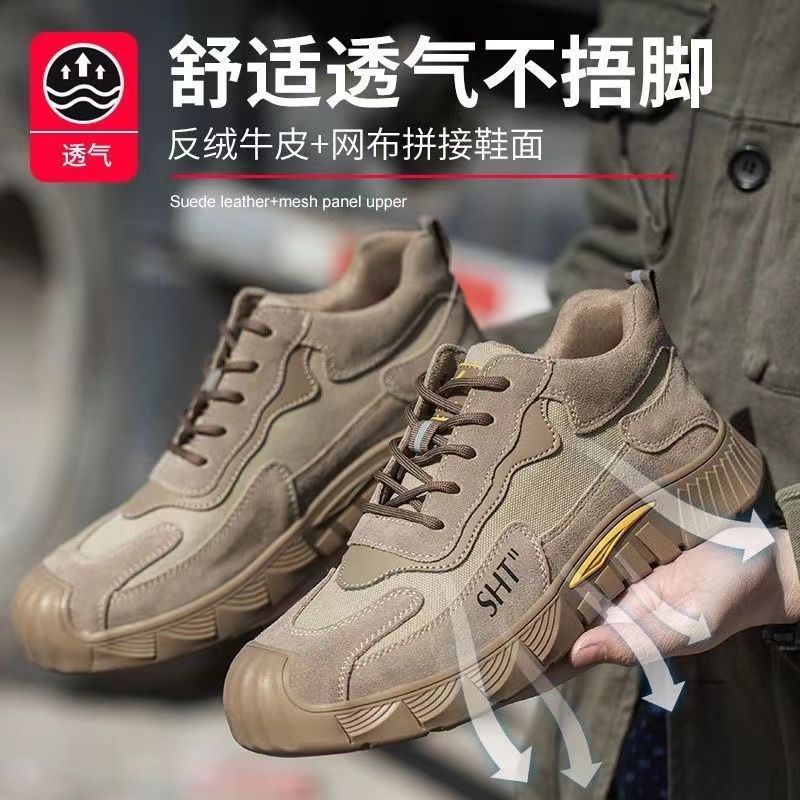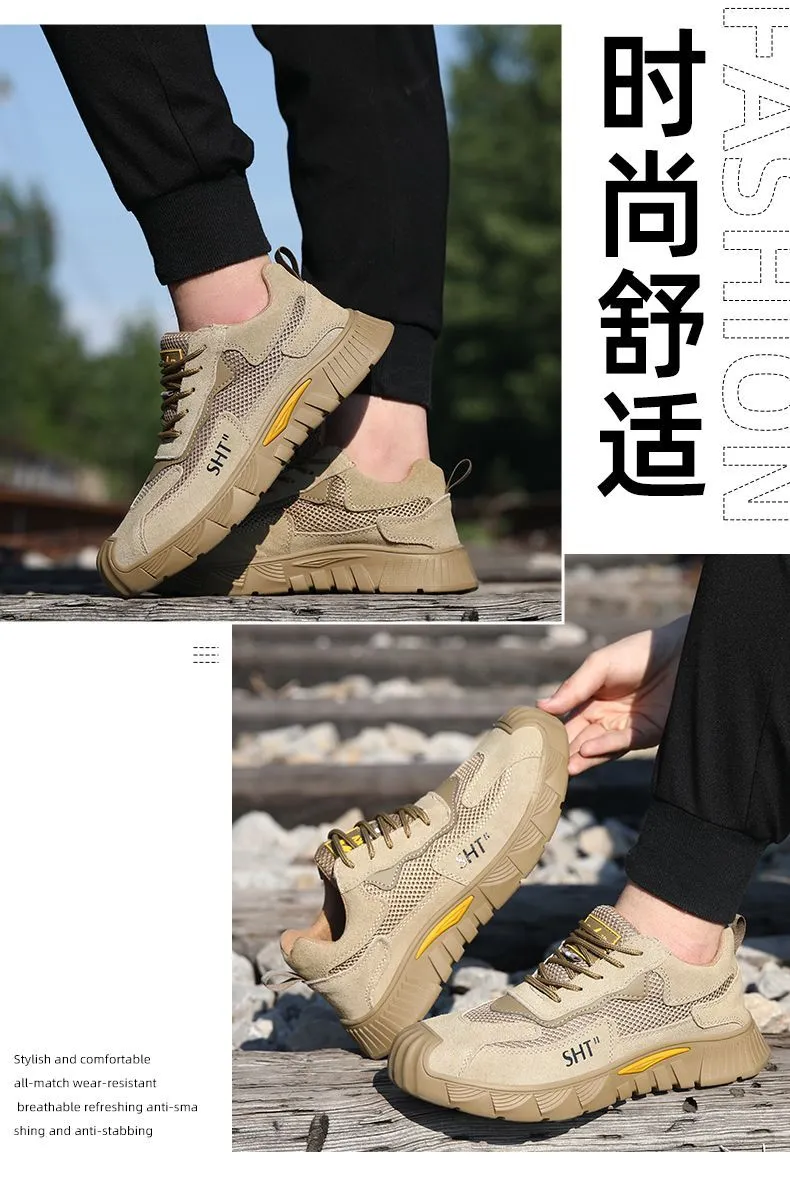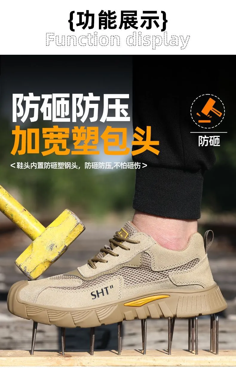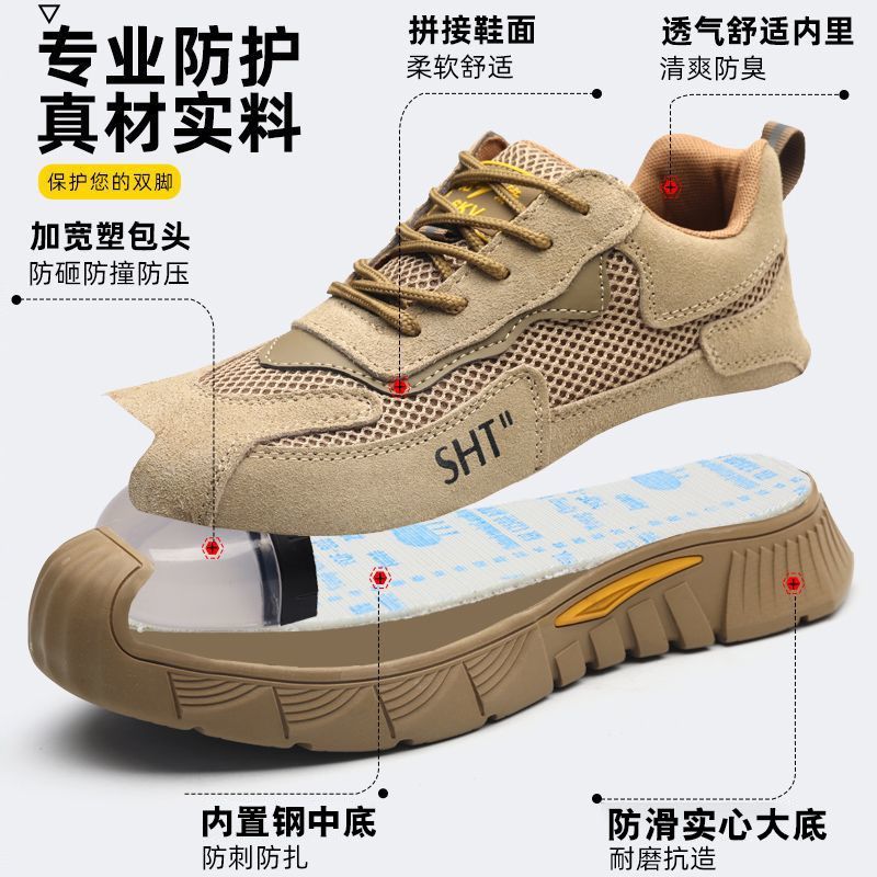 男士夏季劳保鞋网面透气轻便耐磨防砸钢包头防刺穿工地工作鞋