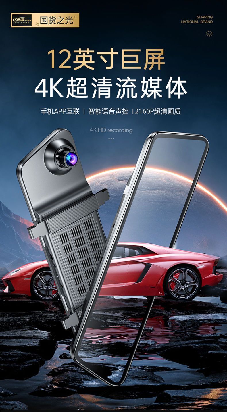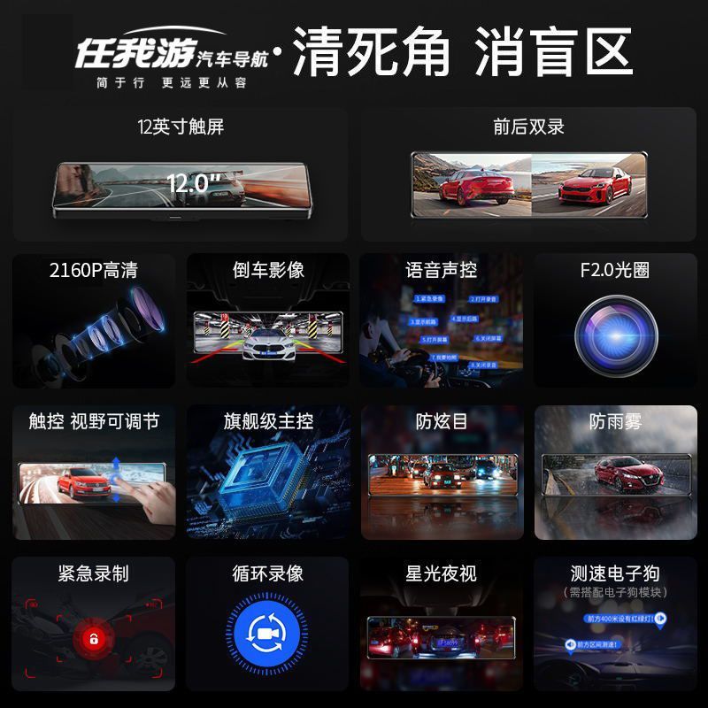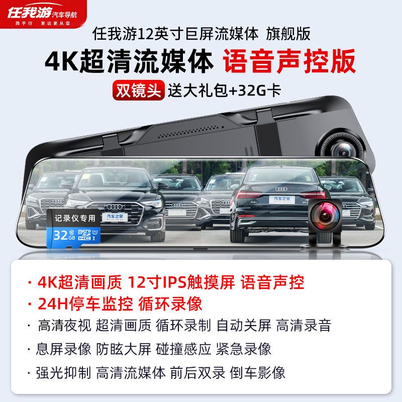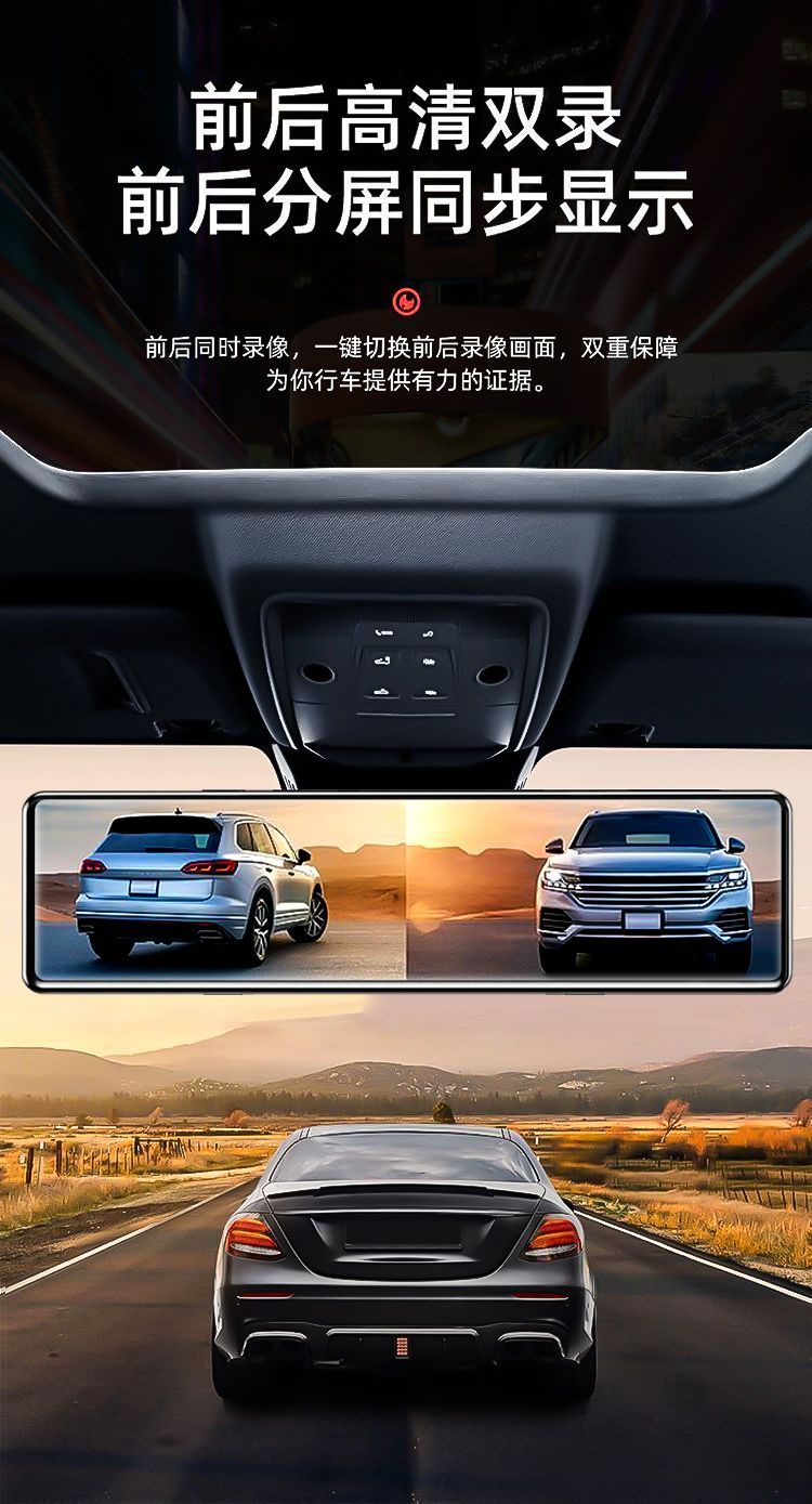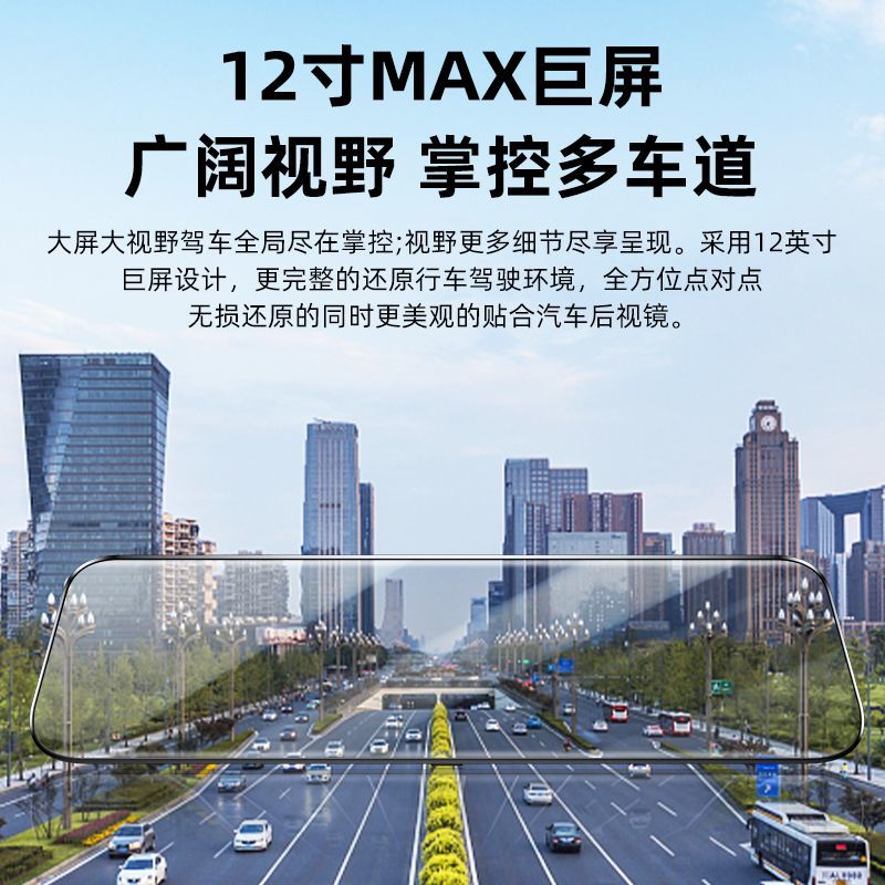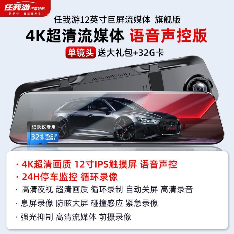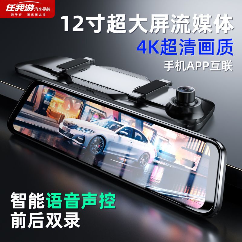 2024新款4k超清全屏行车记录仪夜视前后双镜头360度12寸倒车影像