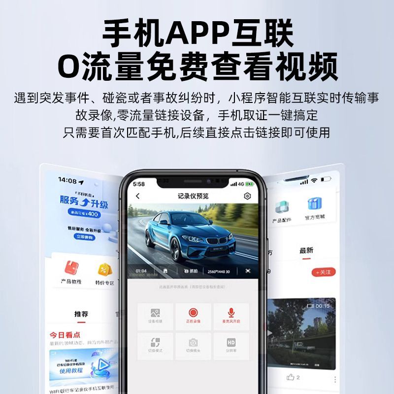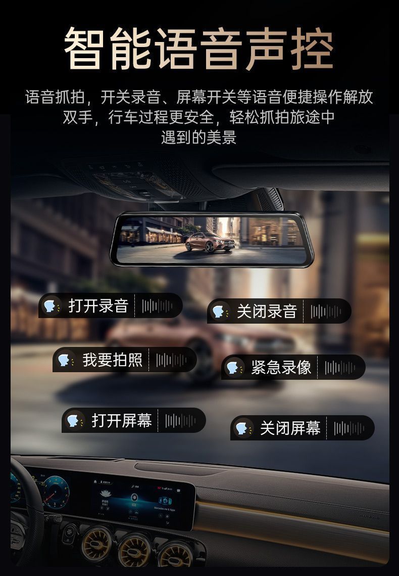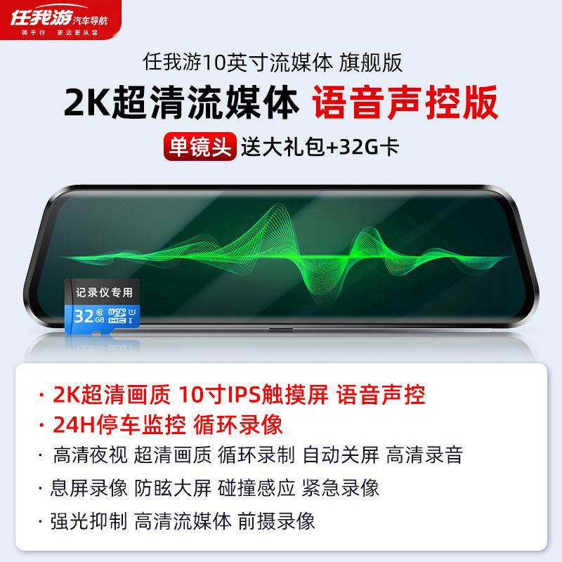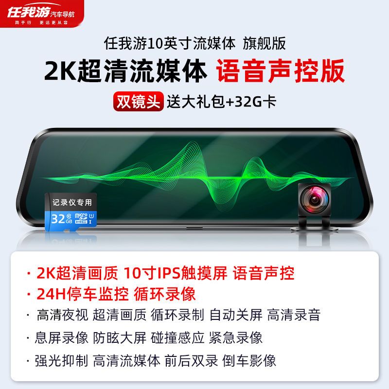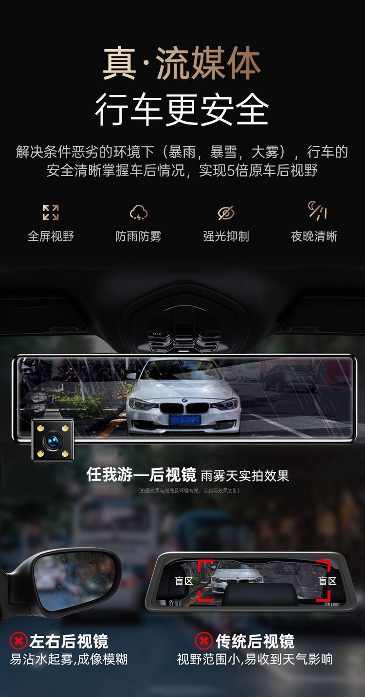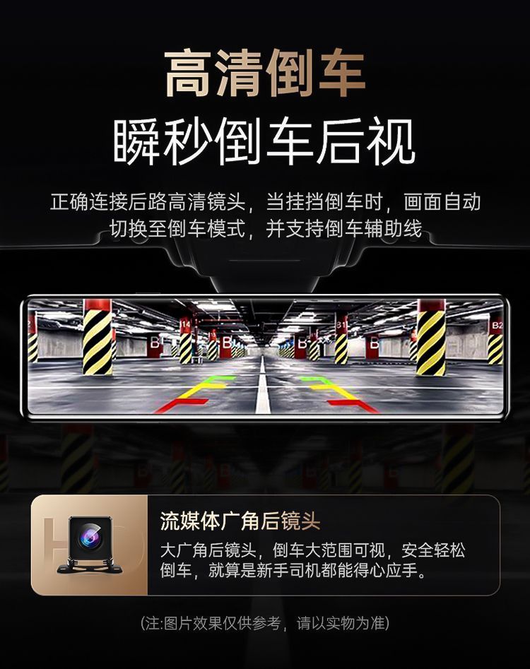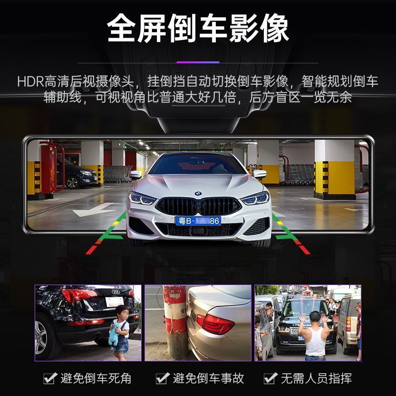 2024新款4k超清全屏行车记录仪夜视前后双镜头360度12寸倒车影像