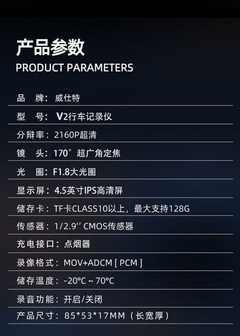 威仕特行车记录仪高清夜视前后双录360度全景倒车影像无线免安装