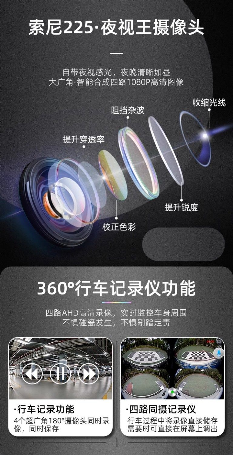 行车记录仪2024新款5D全景360度倒车汽车影像辅助系统高清夜视