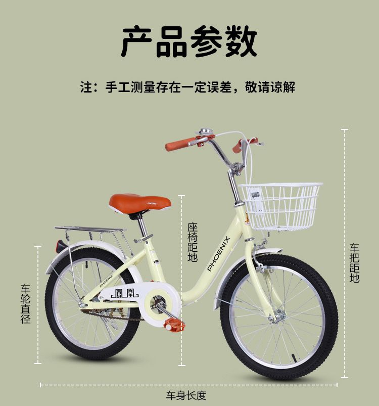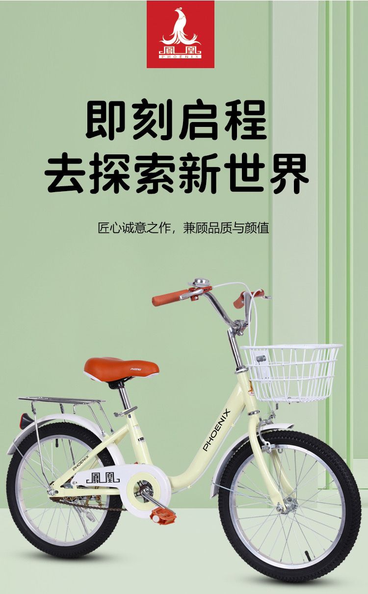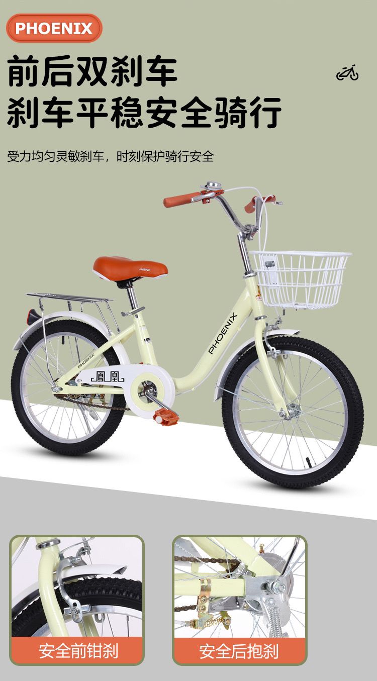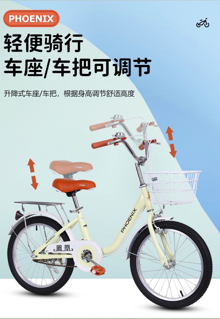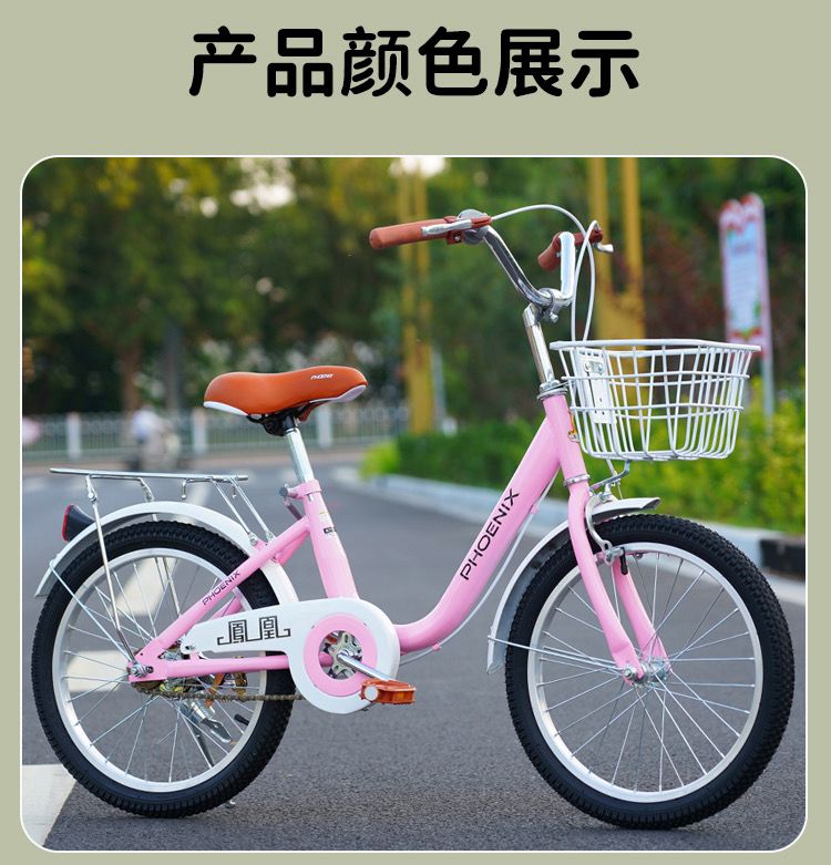 新款凤凰儿童自行车男女孩公主款6-8-12岁小孩脚踏单车中大童单车