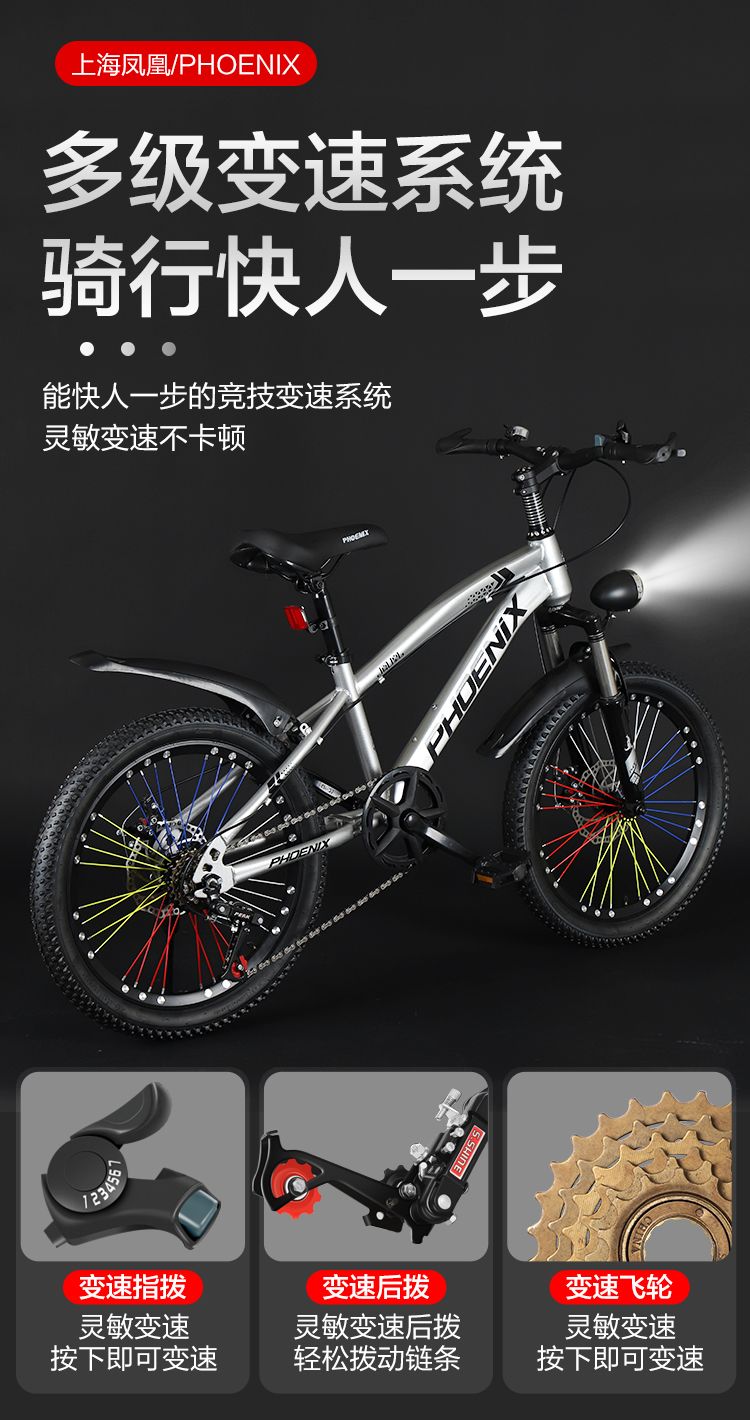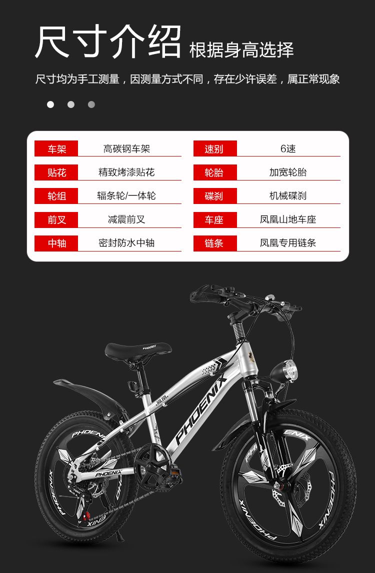 新款凤凰儿童自行车变速山地车6-8-10-12-15岁男女小孩学生中大童