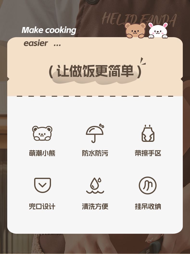 韩式围裙家用厨房做饭防水防油污渍新款成人工作服男女围腰