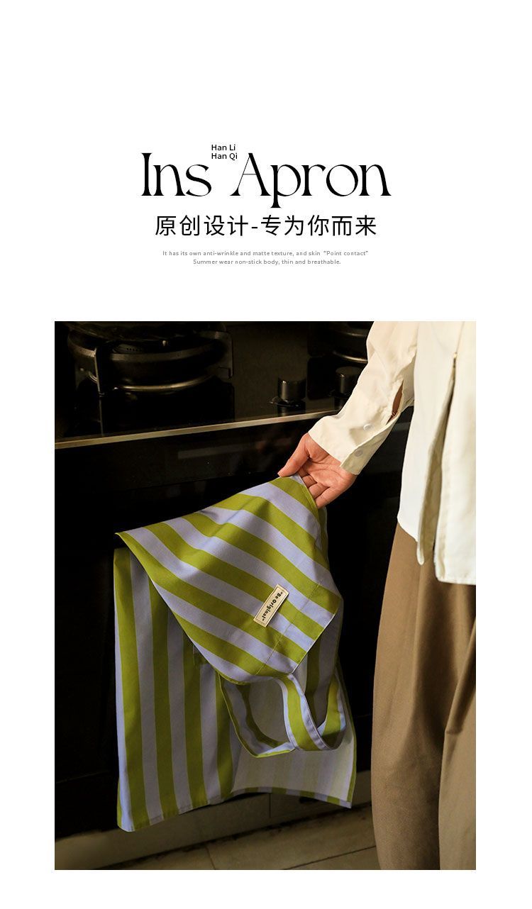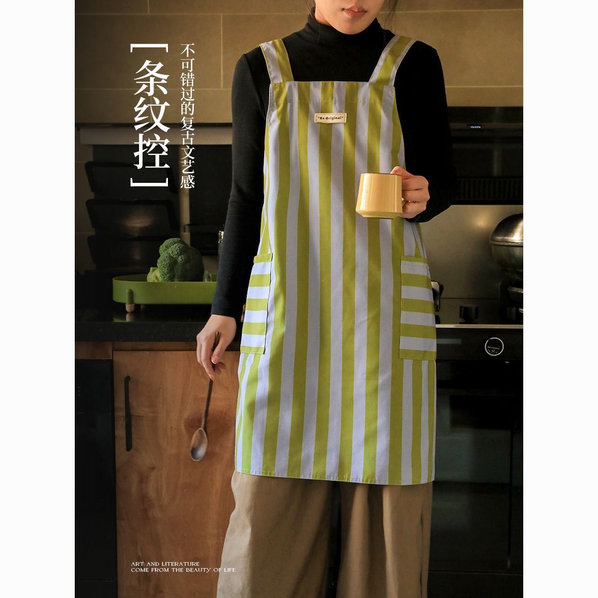 条纹围裙厨房家用防水防油薄款做饭2024新款女工作专用餐饮奶茶店