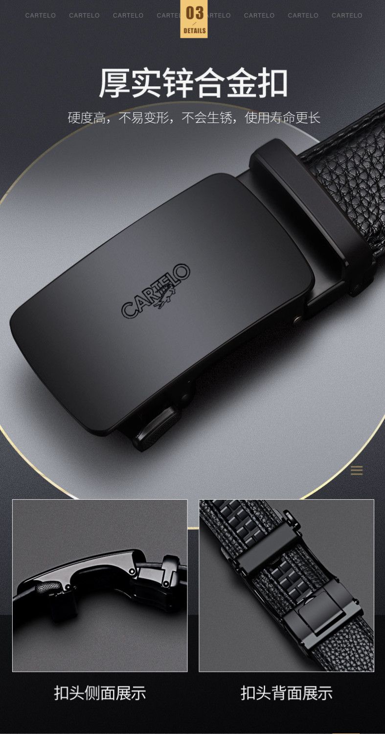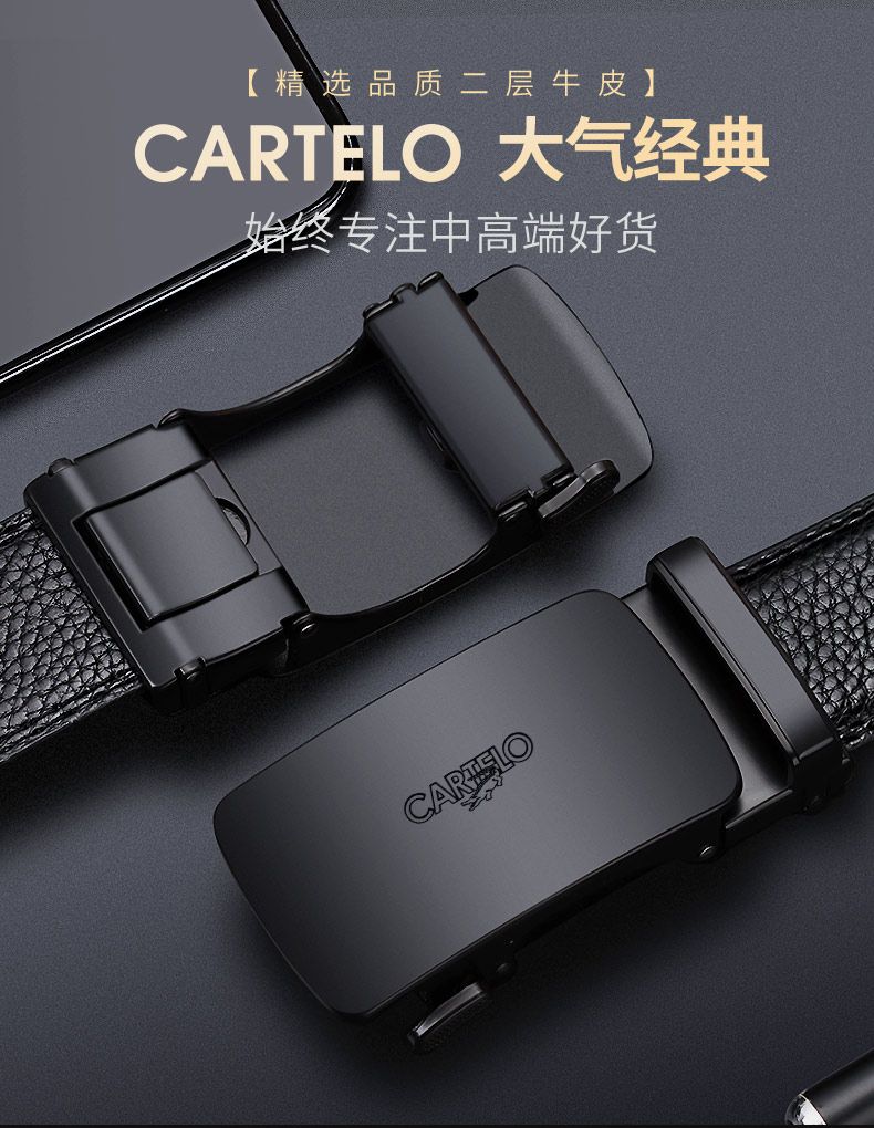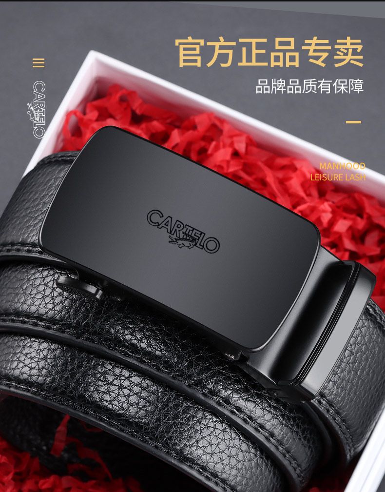 卡帝乐鳄鱼正宗牛皮带真皮中青年学生潮流百搭男士自动扣腰带裤带