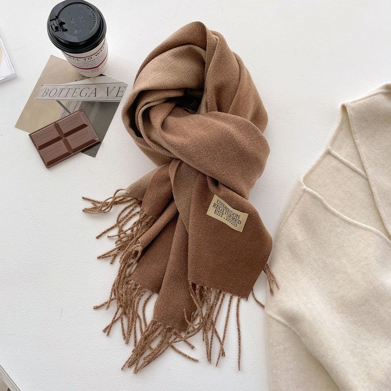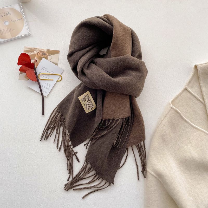 新款韩系纯色仿羊绒围巾女冬季百搭新款加厚保暖围巾学生围脖披肩
