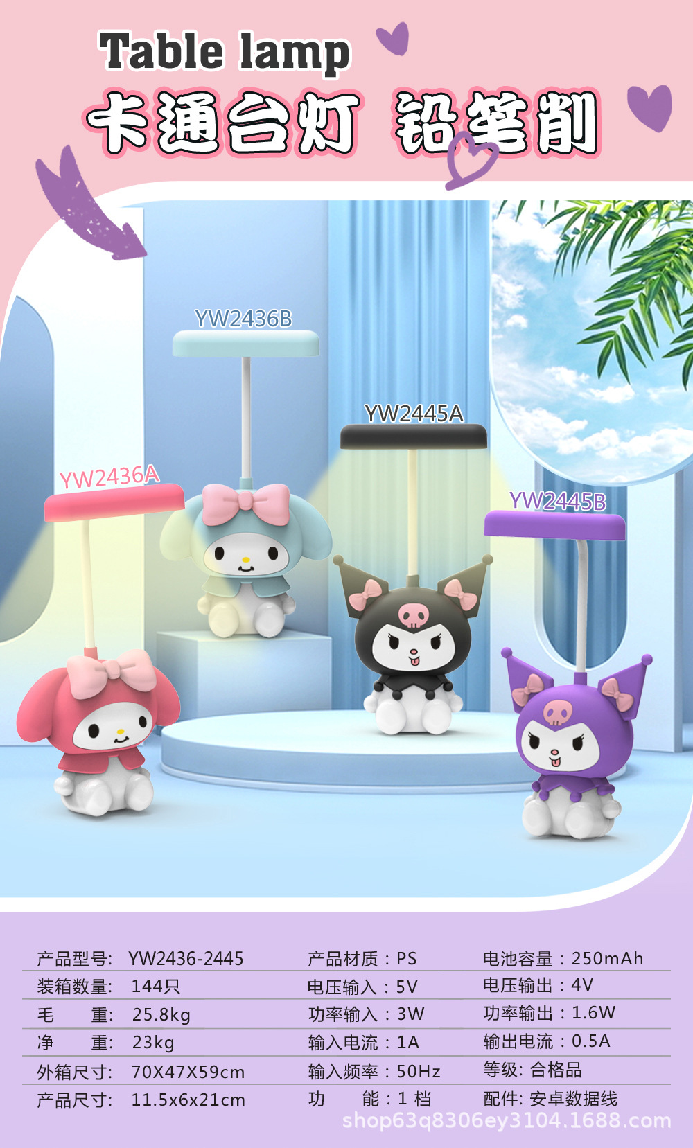 火爆款超萌卡通三丽鸥台灯卧室小夜灯桌面高颜值削笔刀多功能台灯