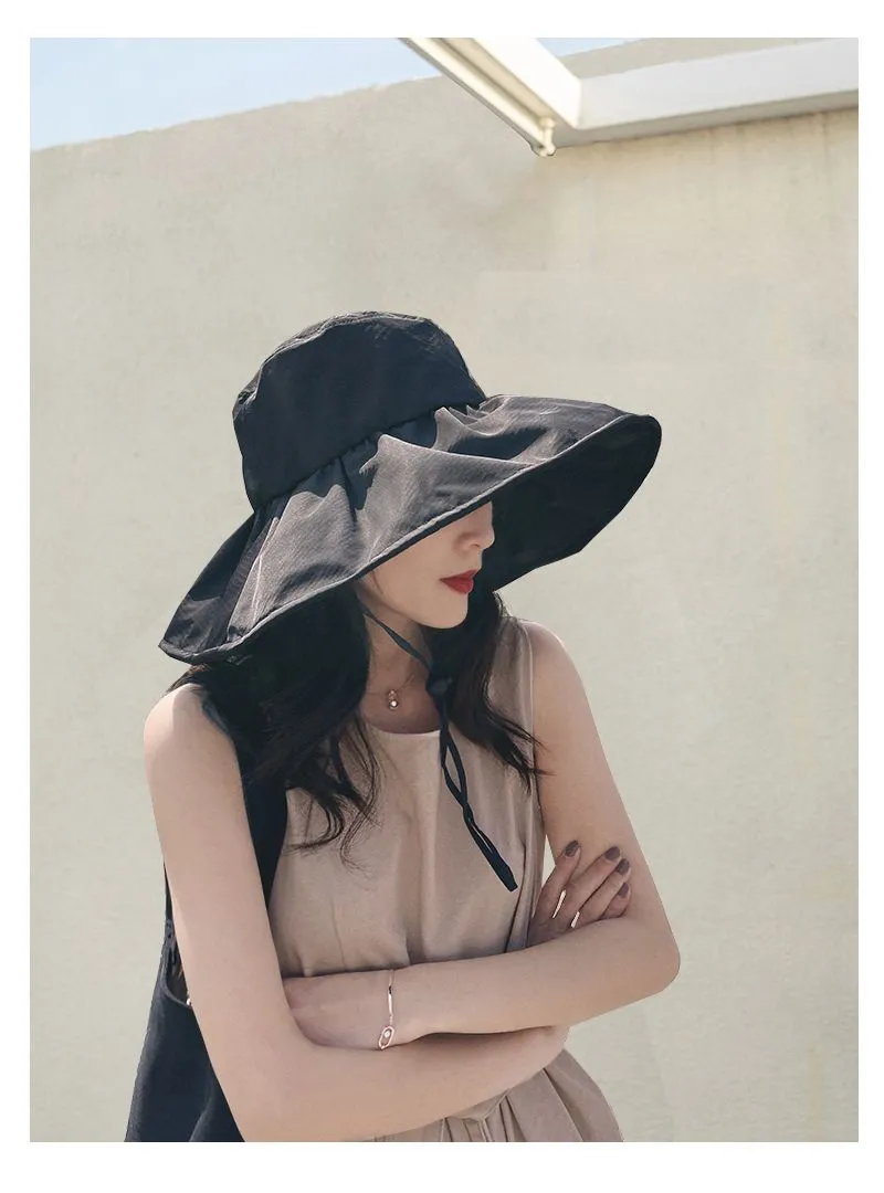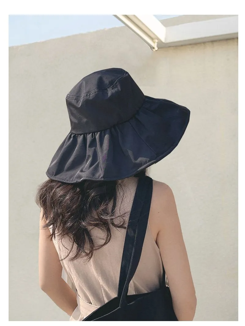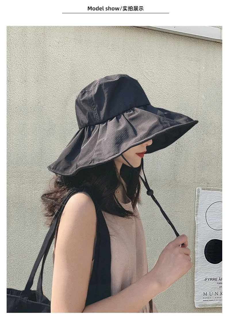 炽热夏季防晒帽女渔夫帽薄款遮阳防紫外线大帽檐内里黑胶太阳帽子