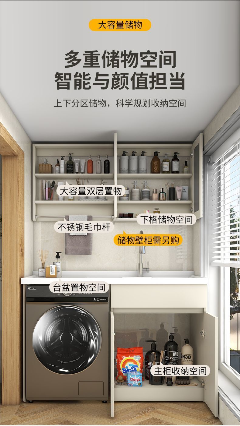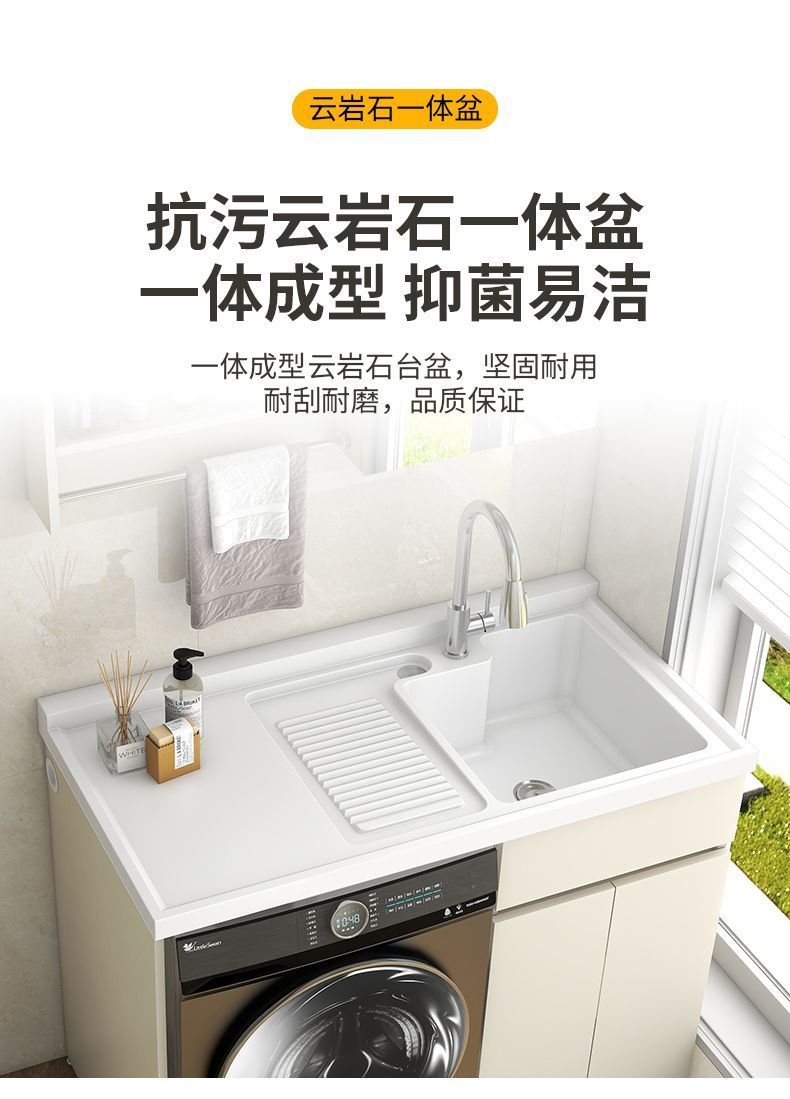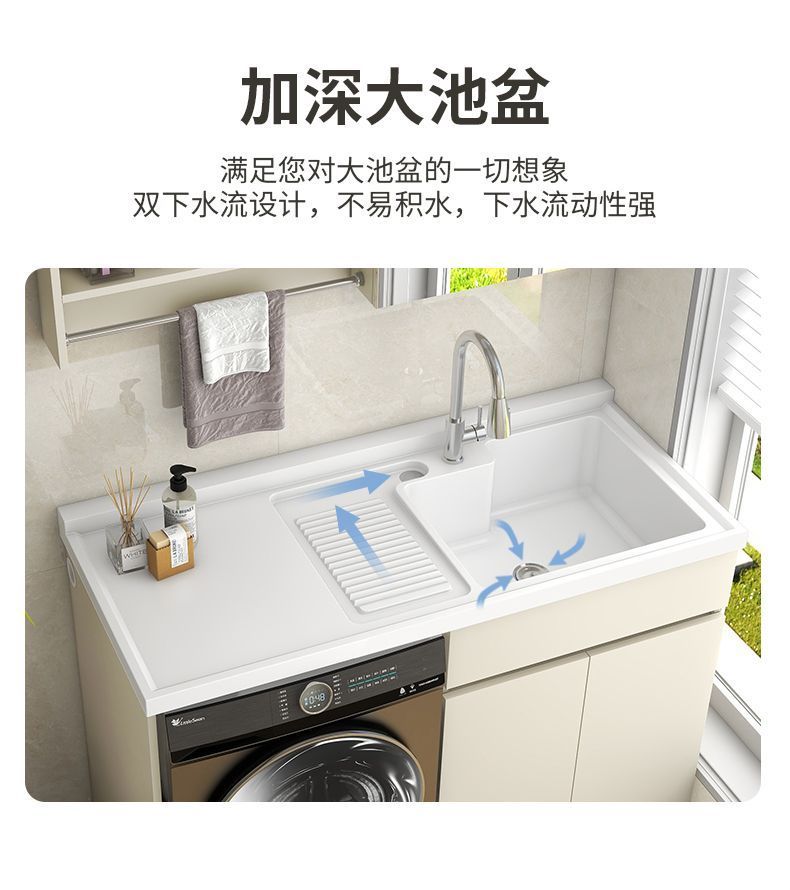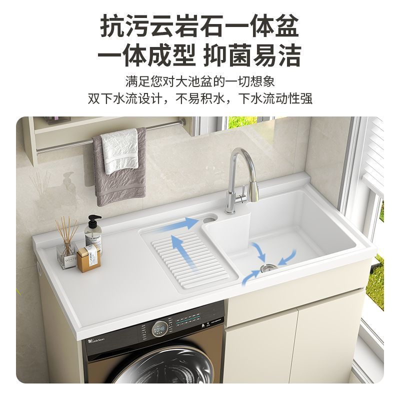 阳台洗衣柜一体台盆洗衣池槽带搓板滚筒洗衣机柜组合蜂窝铝浴室柜