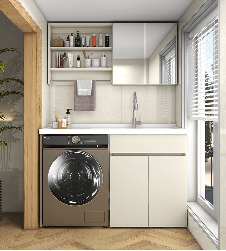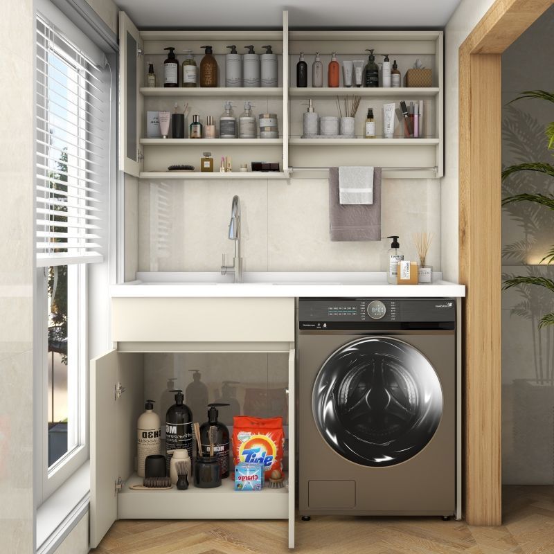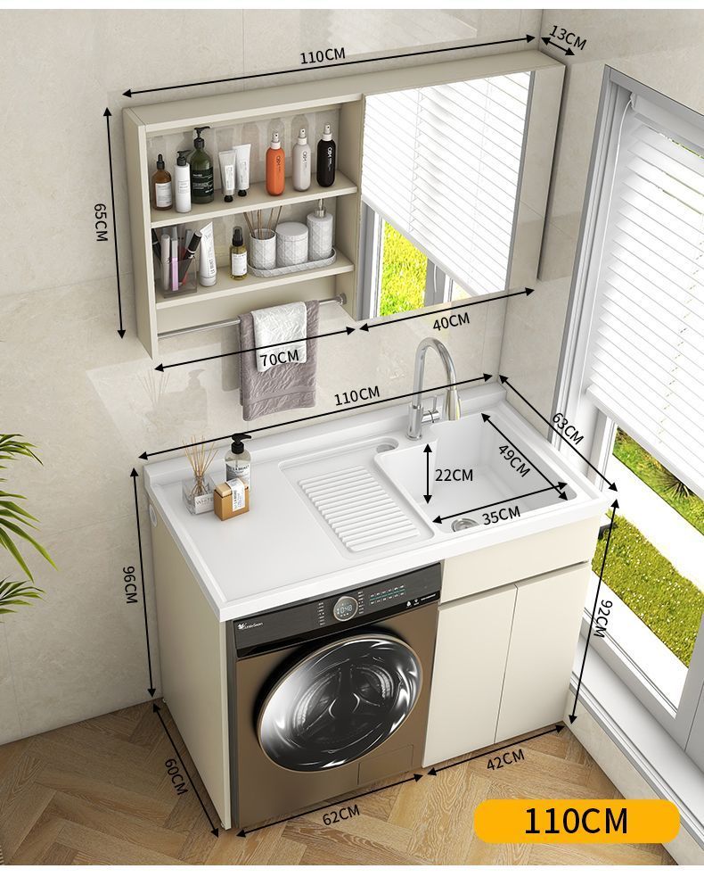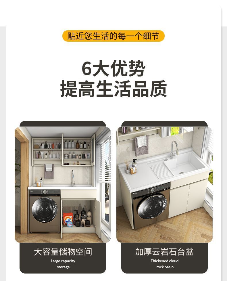 阳台洗衣柜一体台盆洗衣池槽带搓板滚筒洗衣机柜组合蜂窝铝浴室柜