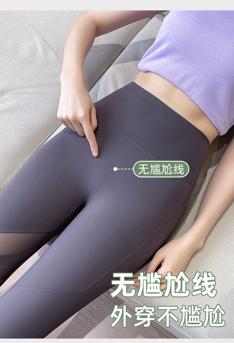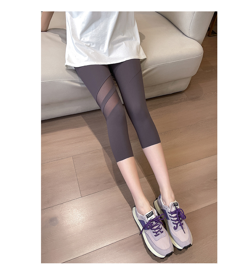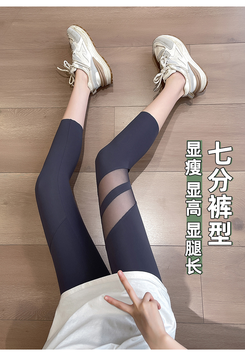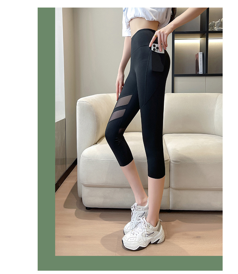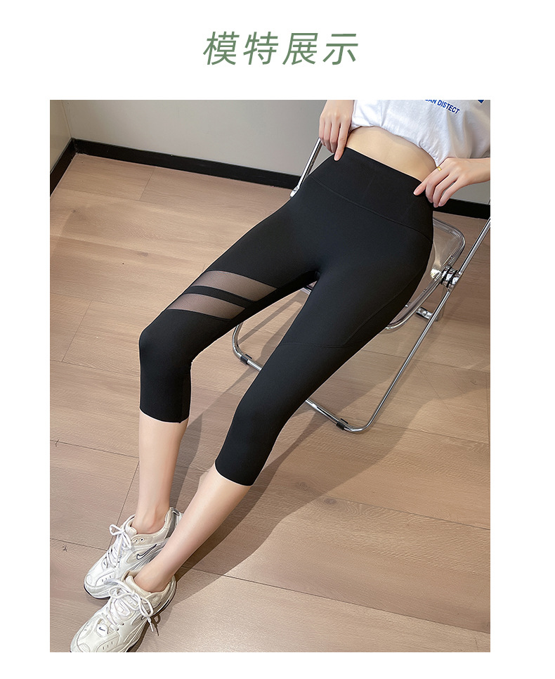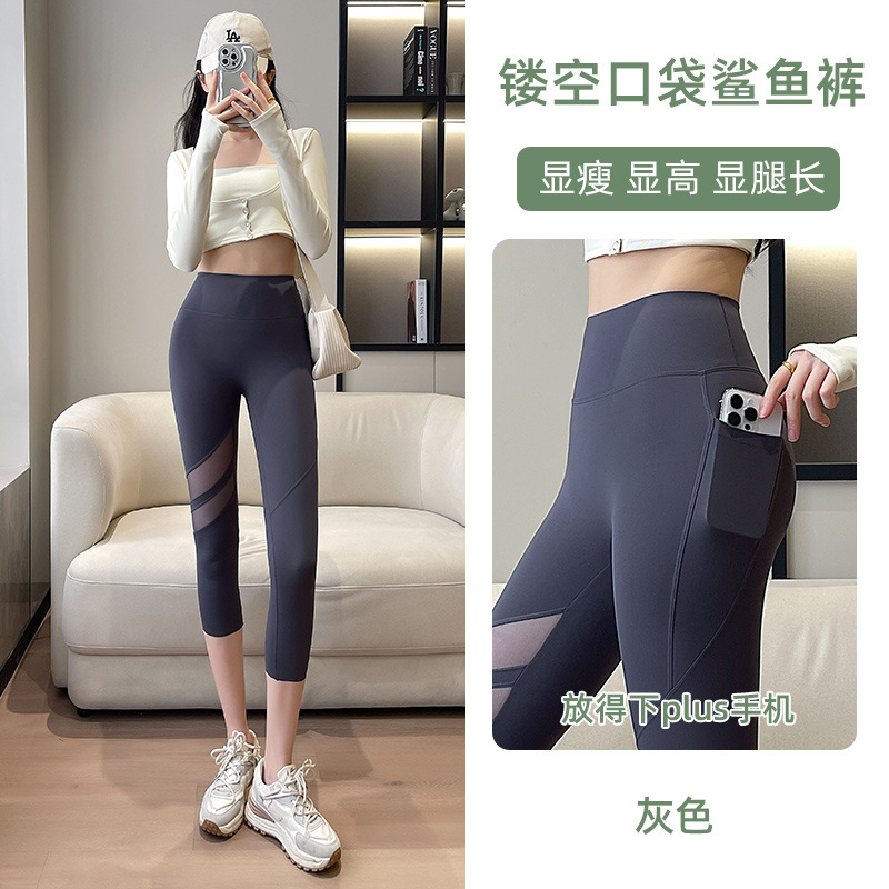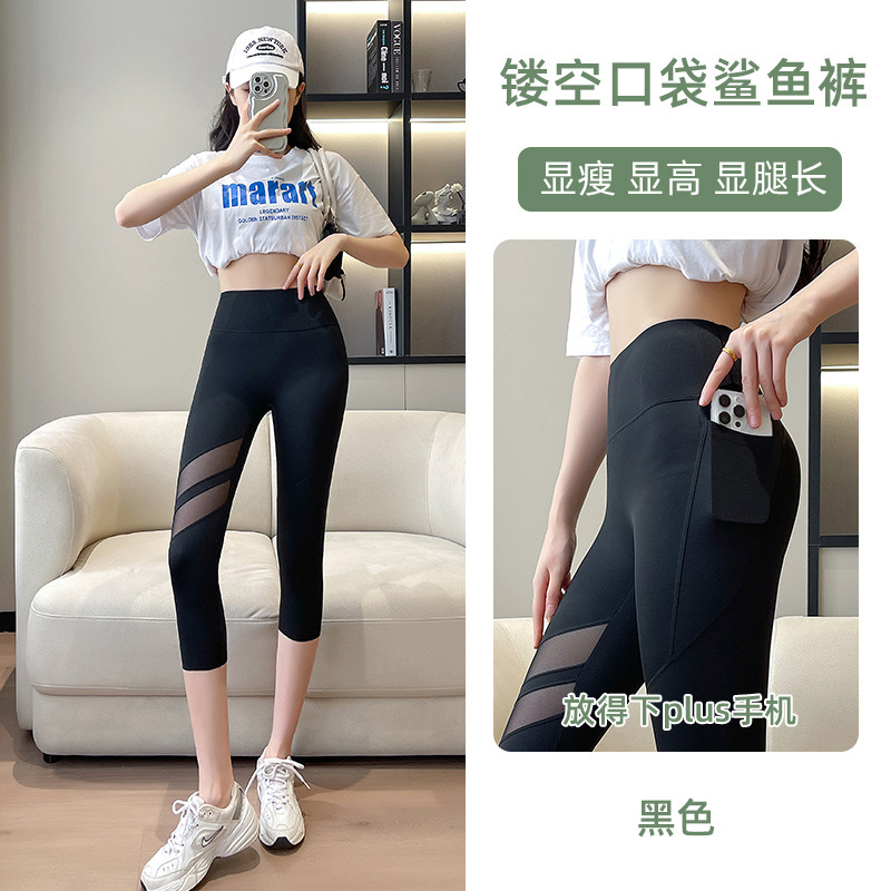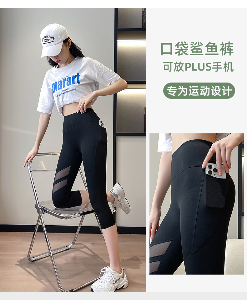 网纱口袋鲨鱼裤女夏季外穿七分薄款打底裤高腰收腹提臀瑜伽芭比裤