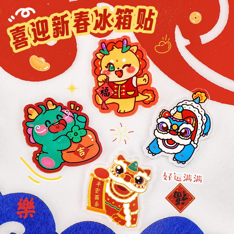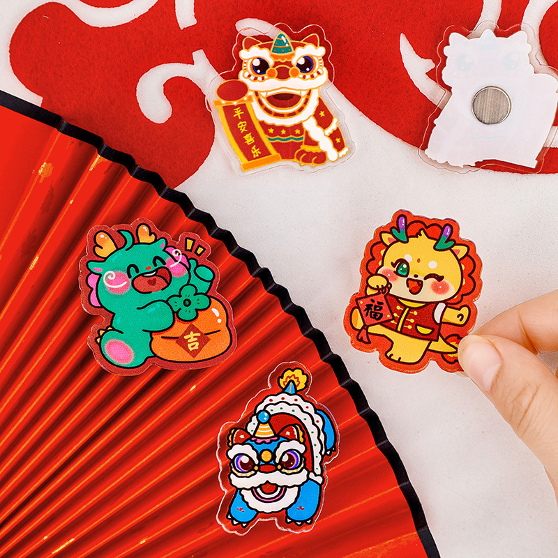 卡通龙龙磁性冰箱贴 中国风可爱祝福小礼品创意亚克力装饰磁力贴