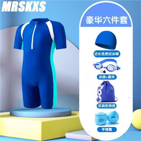 儿童泳衣男孩分体速干防晒2024新中大童男童游泳衣专业泳镜装备