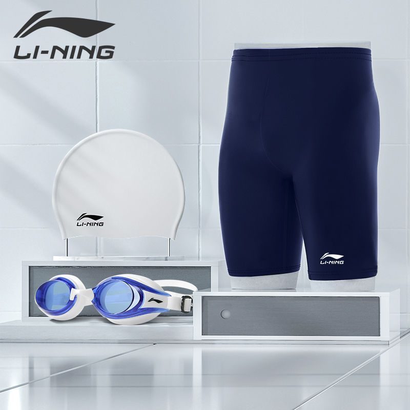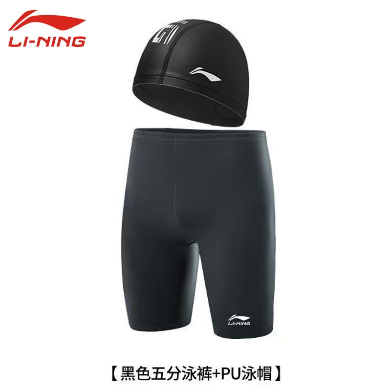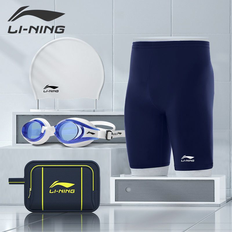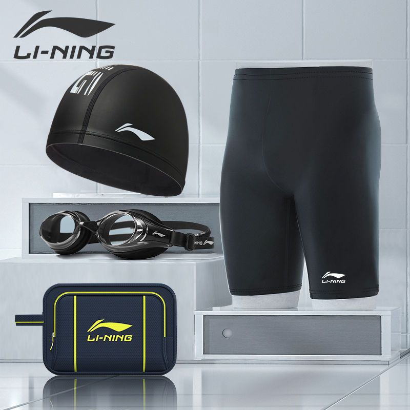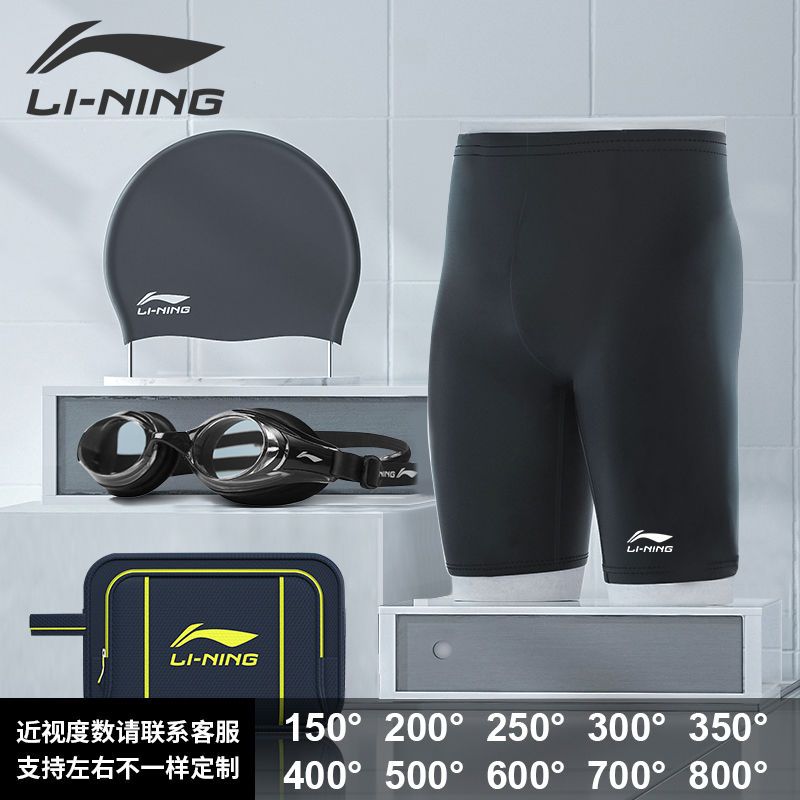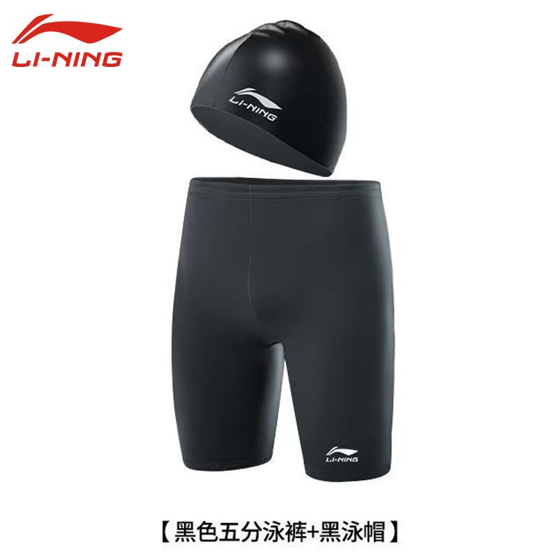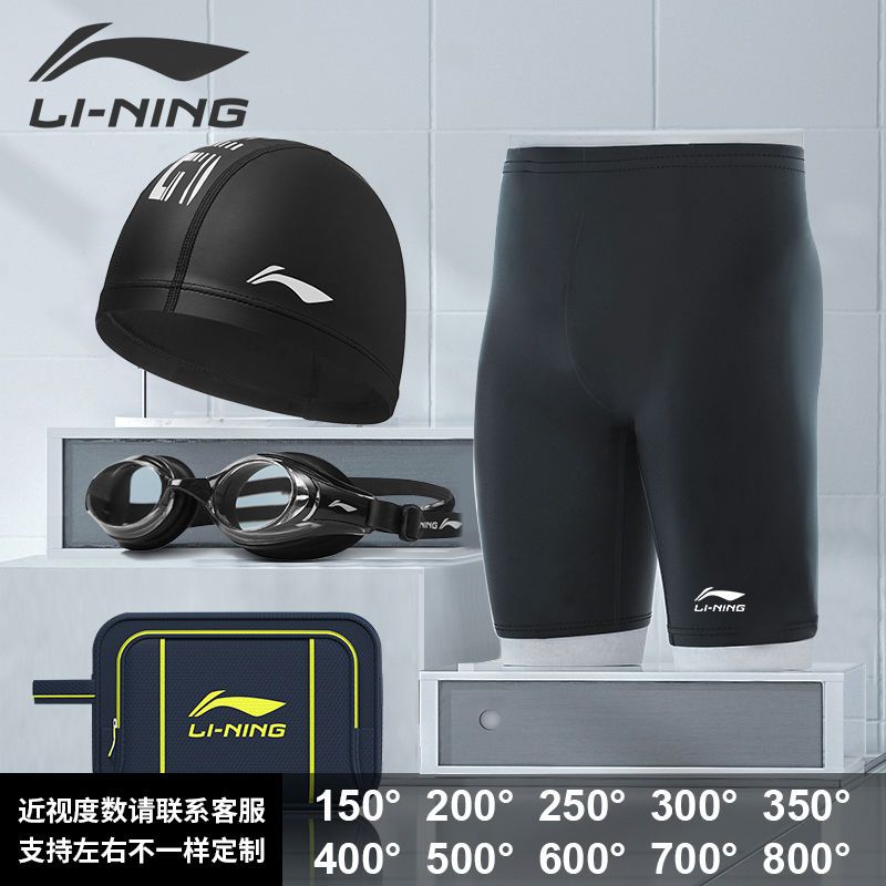 李宁游泳裤男平角裤防尴尬速干五分男士泳衣泳镜泳帽套装大码装备