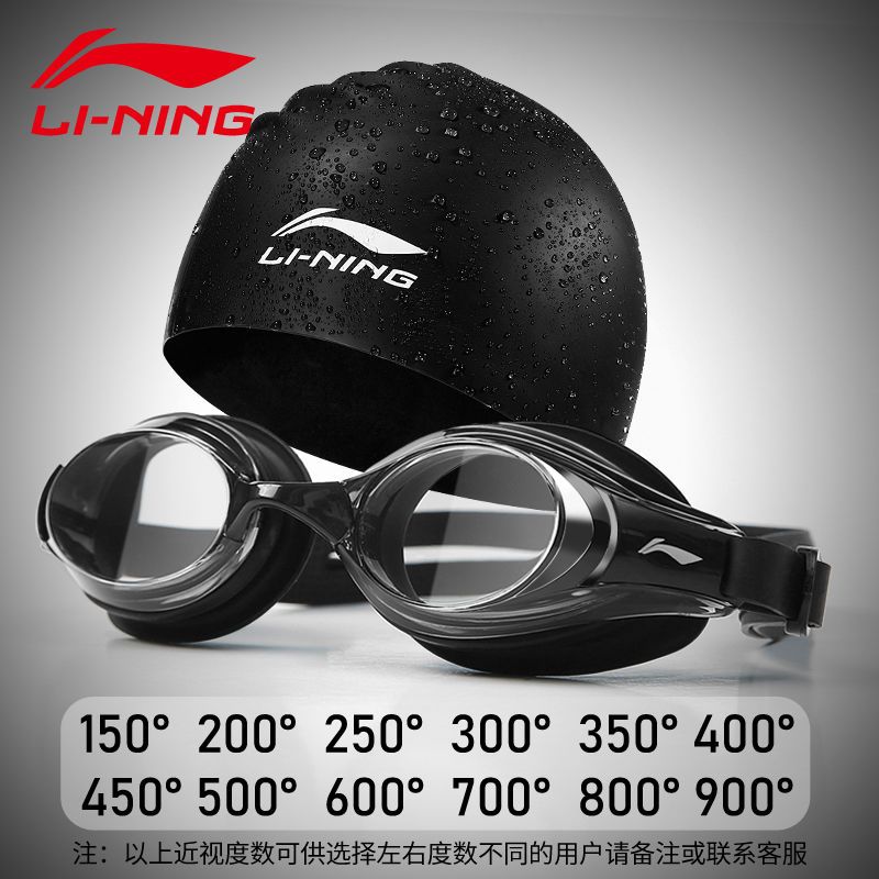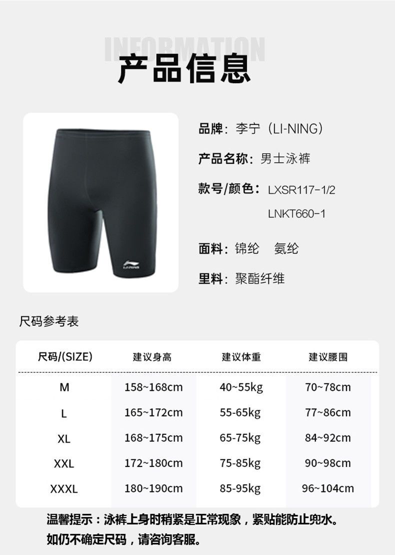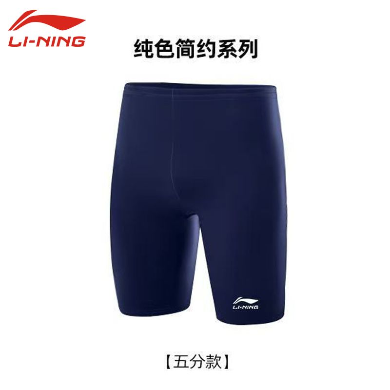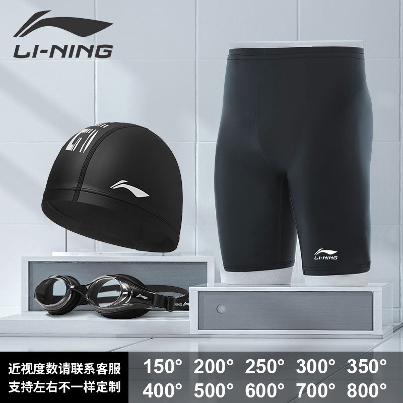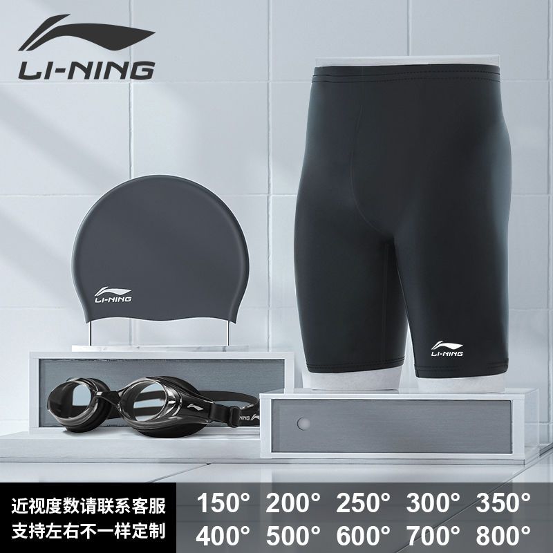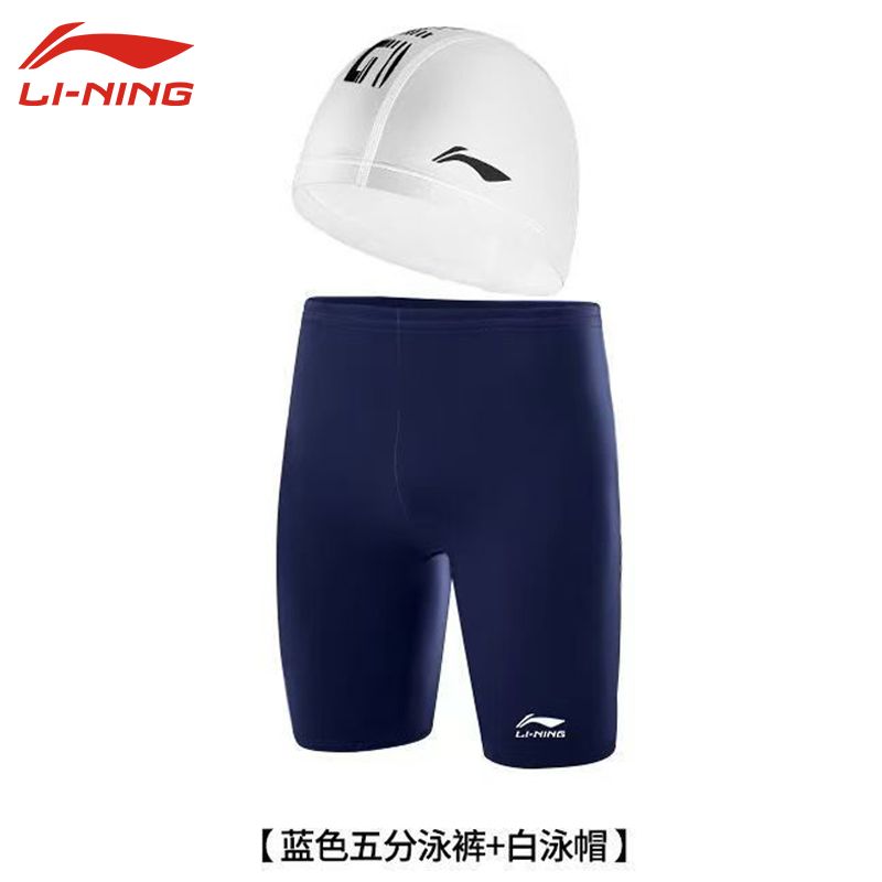 李宁游泳裤男平角裤防尴尬速干五分男士泳衣泳镜泳帽套装大码装备