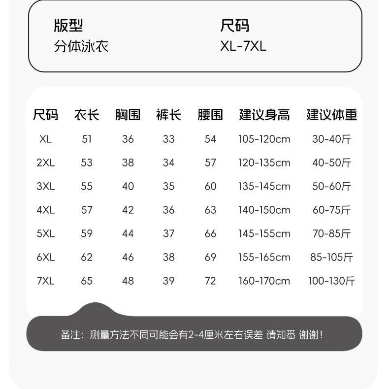 | 7 size xl recommended weight 50.00 kg-65.00 kg(7XL码建议体重100-130斤) | USD $10.6 | 99999 piece available |