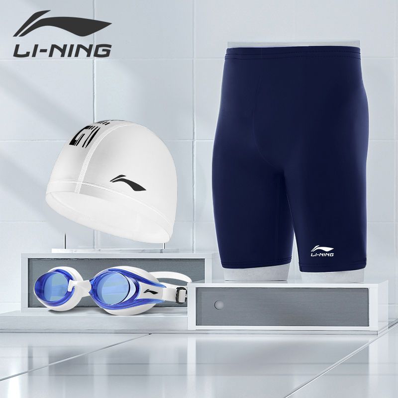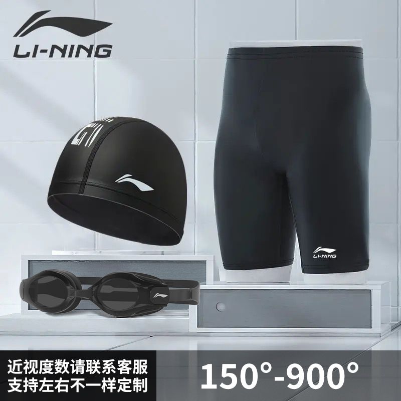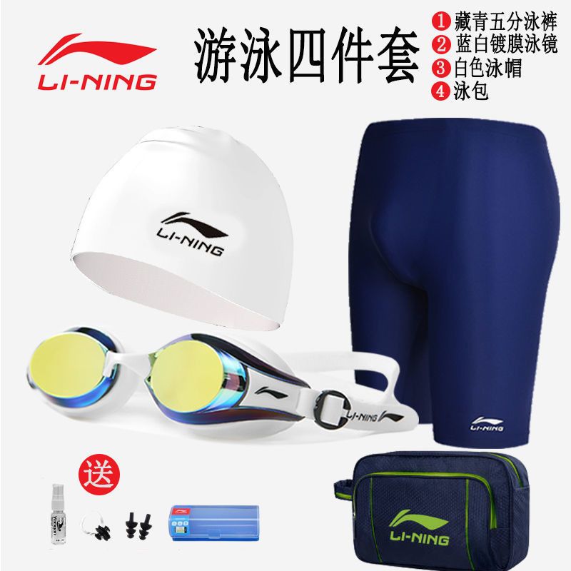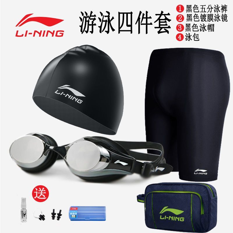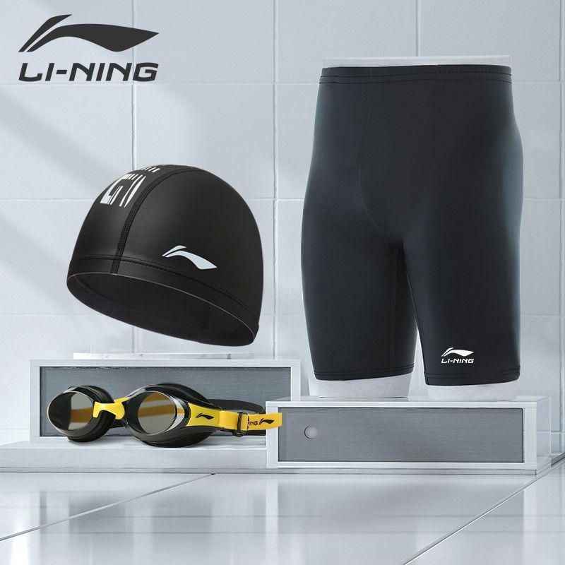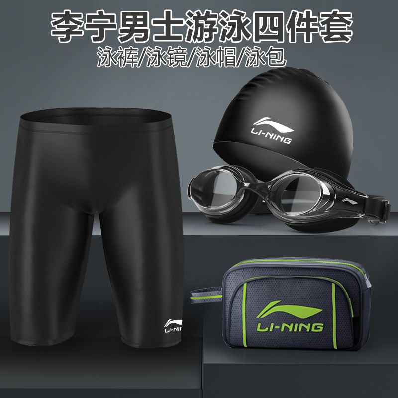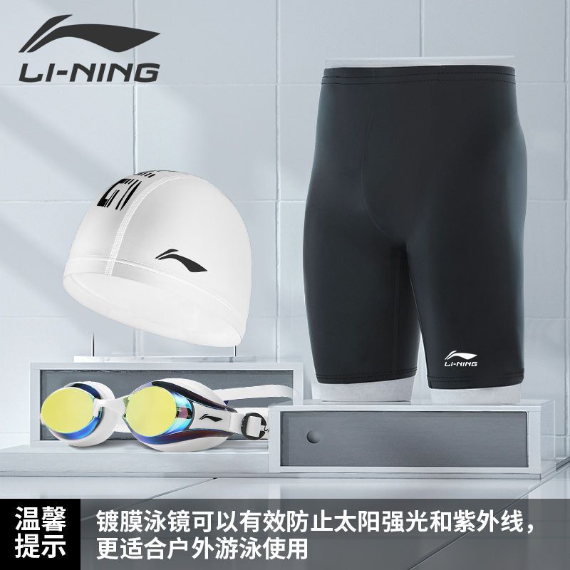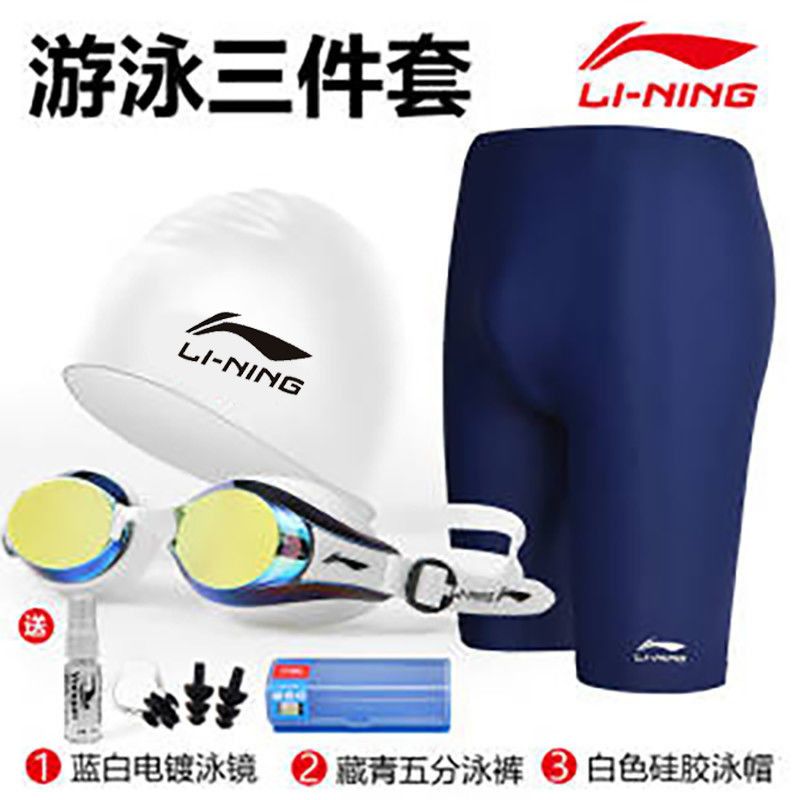 李宁游泳裤男成人泳衣五分泳裤泳镜泳帽三件套游泳装备全套一整套