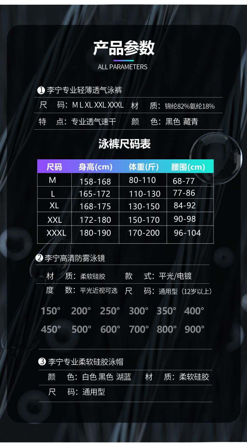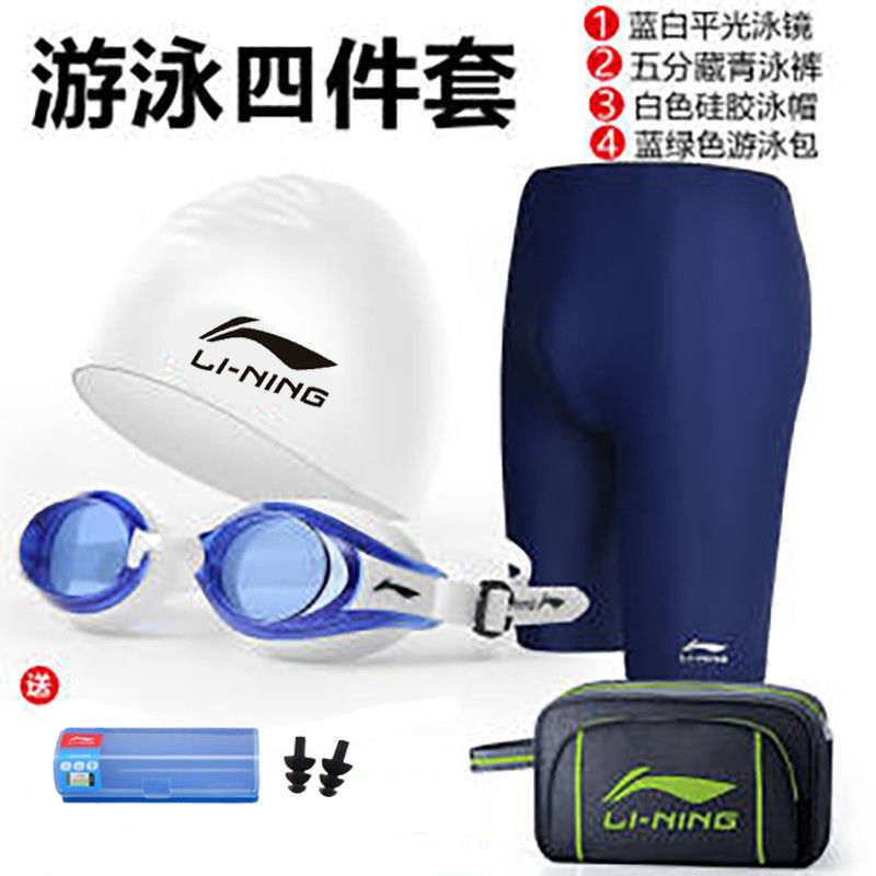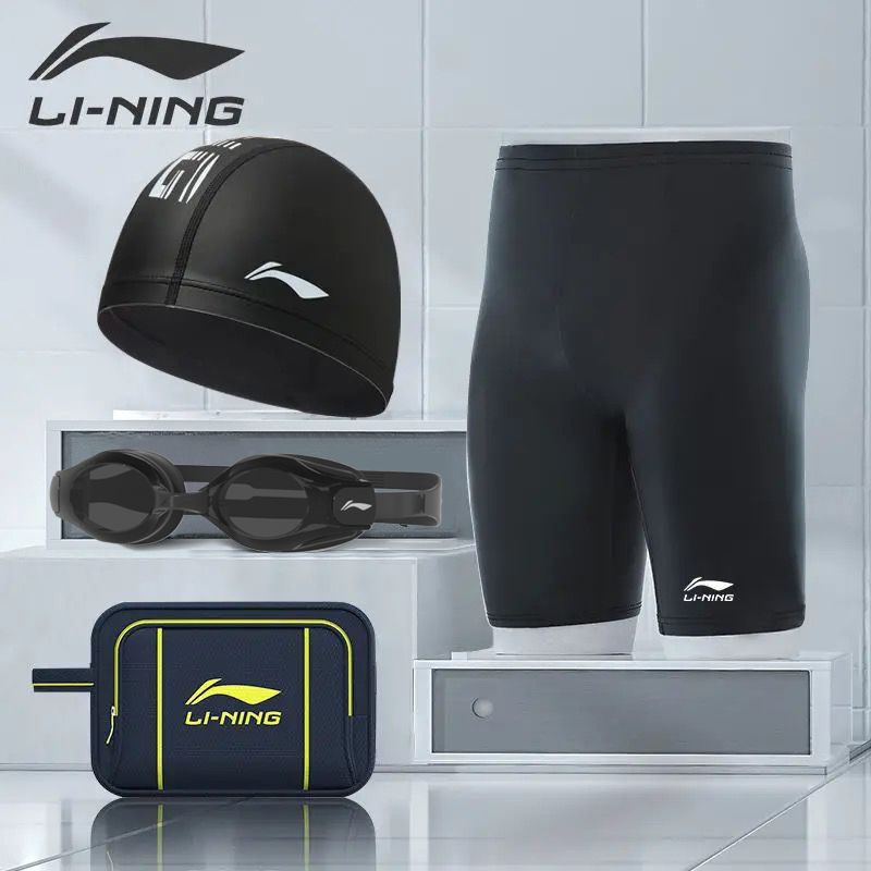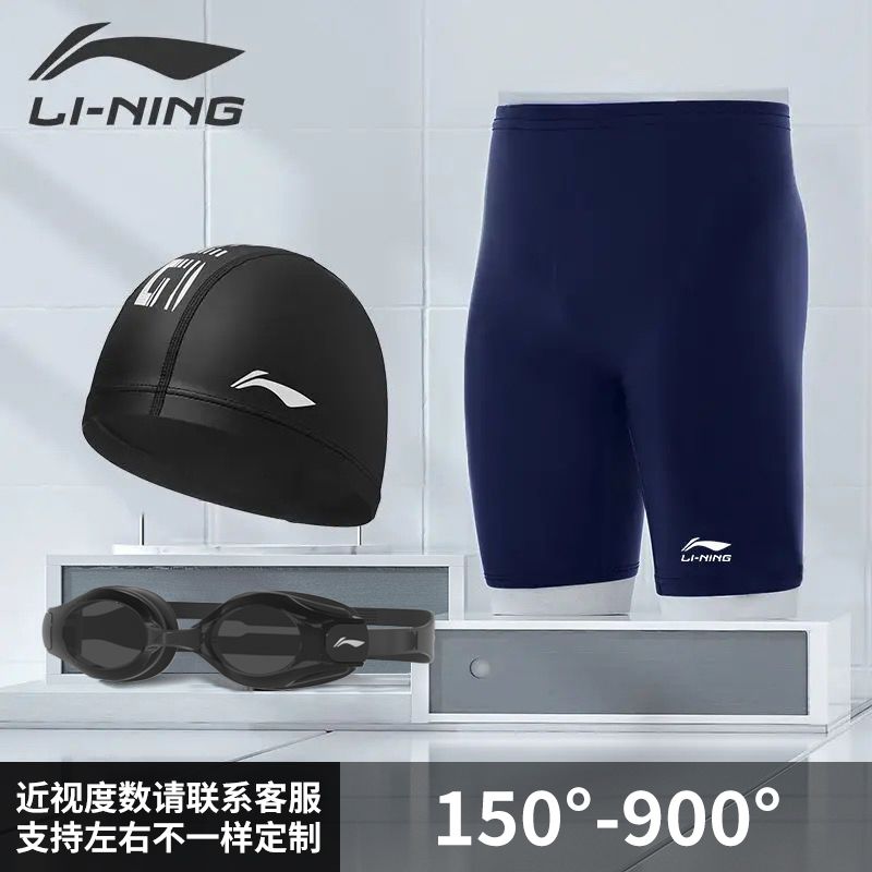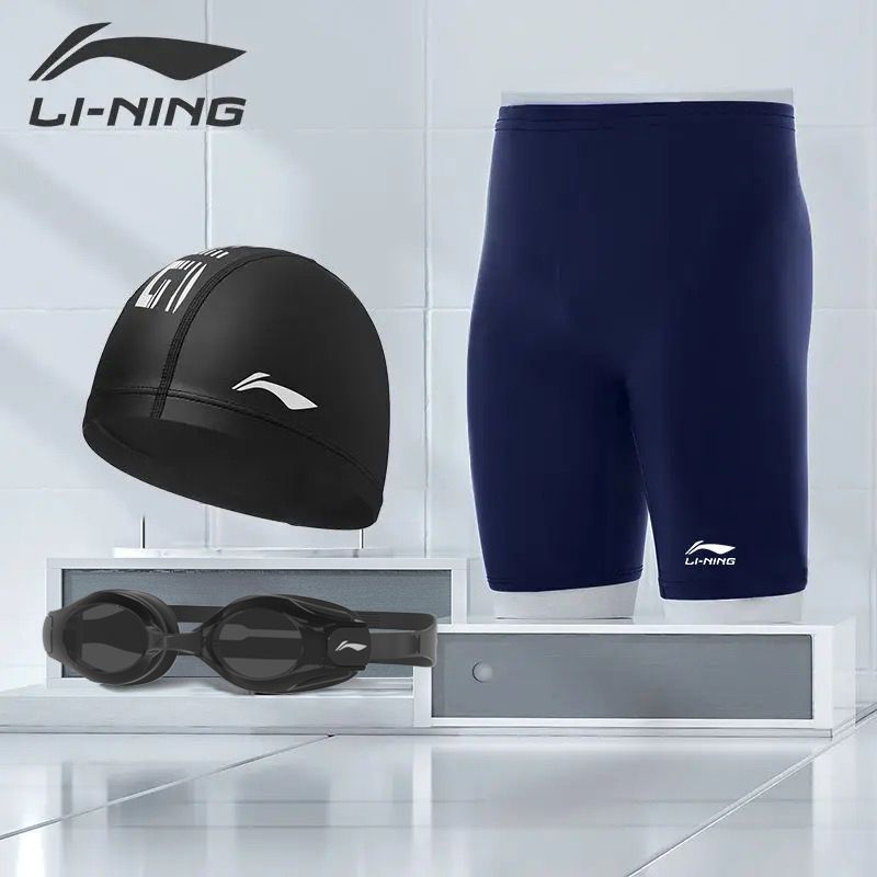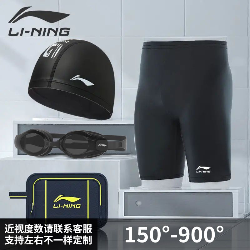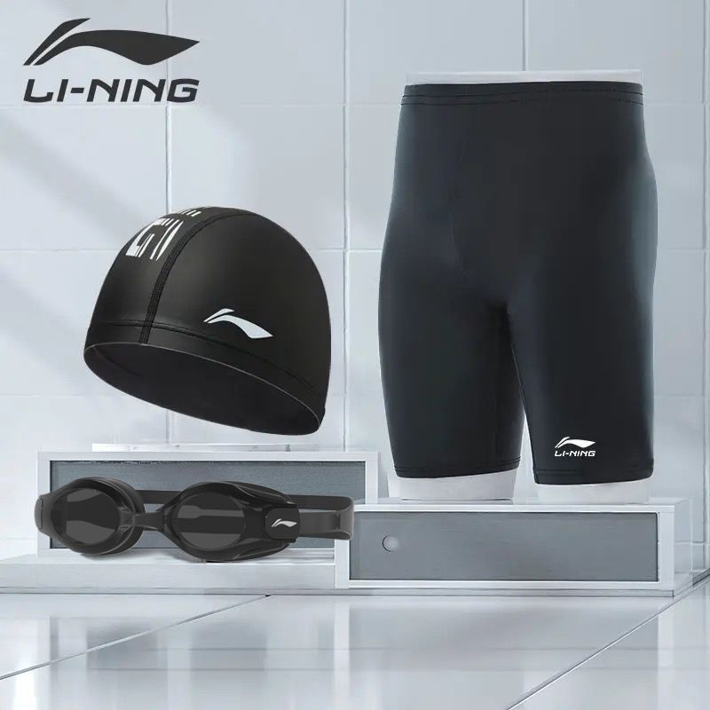 李宁游泳裤男成人泳衣五分泳裤泳镜泳帽三件套游泳装备全套一整套